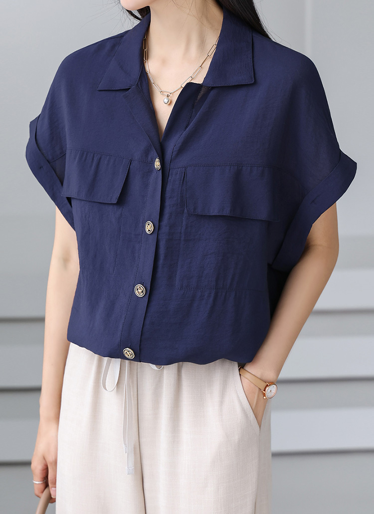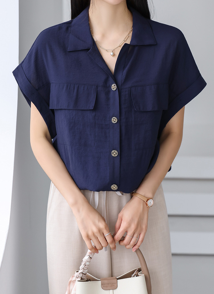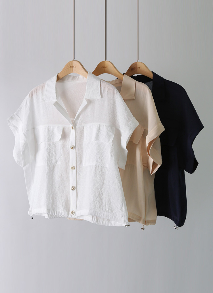 [THE ONME] オープンカラーロールアップスリーブシャツブラウス bl40677