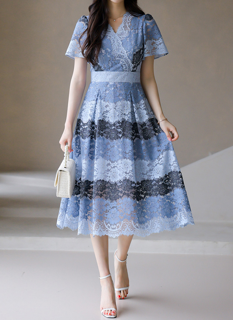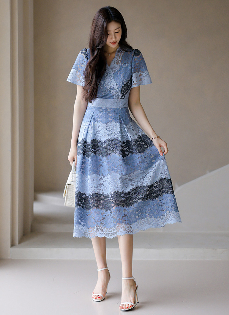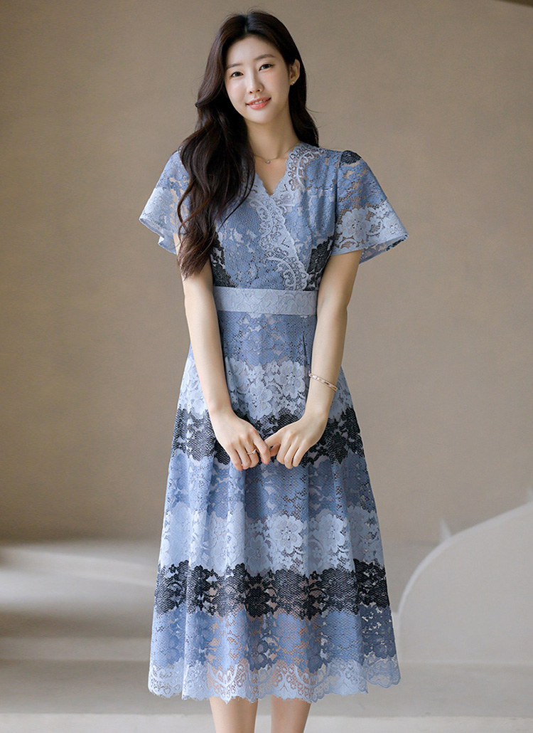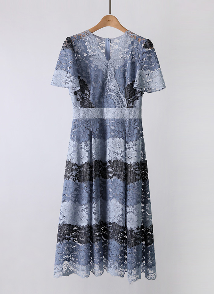 물결 스트라이프로 컬러 레이어링 된 레이스 소재로