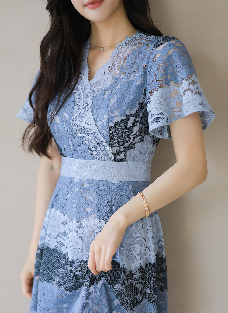 [LouisAngel] マルチカラーフラワーレースロングワンピース op40683
