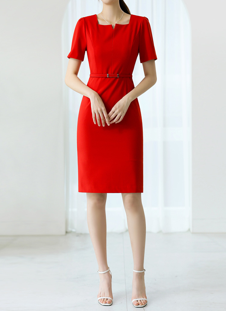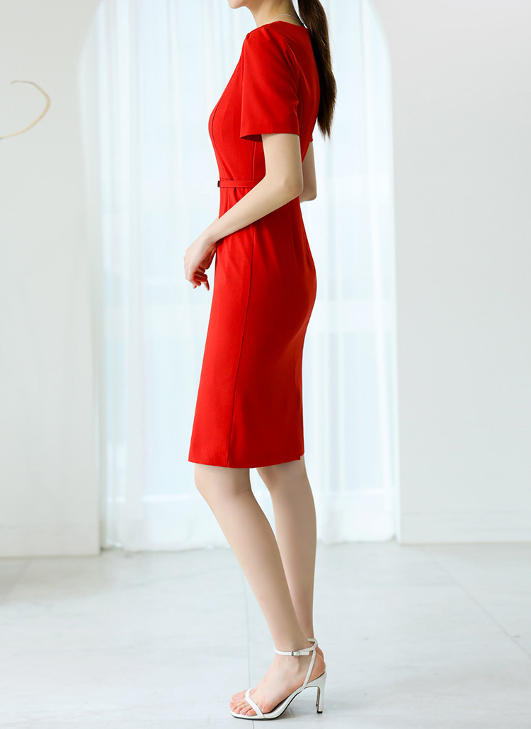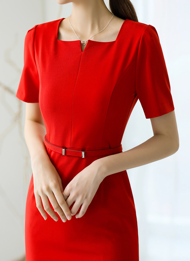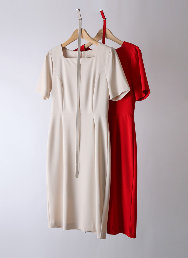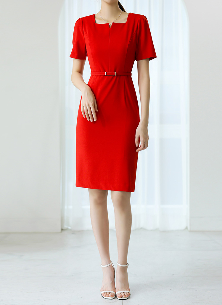 ベルト付きスクエアネックミディワンピース op40752