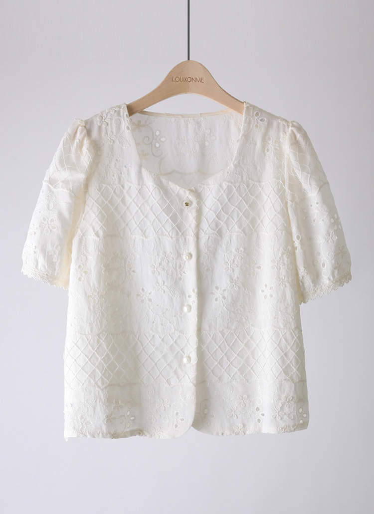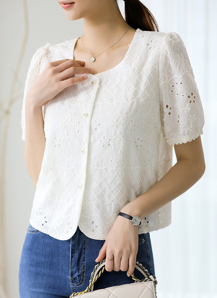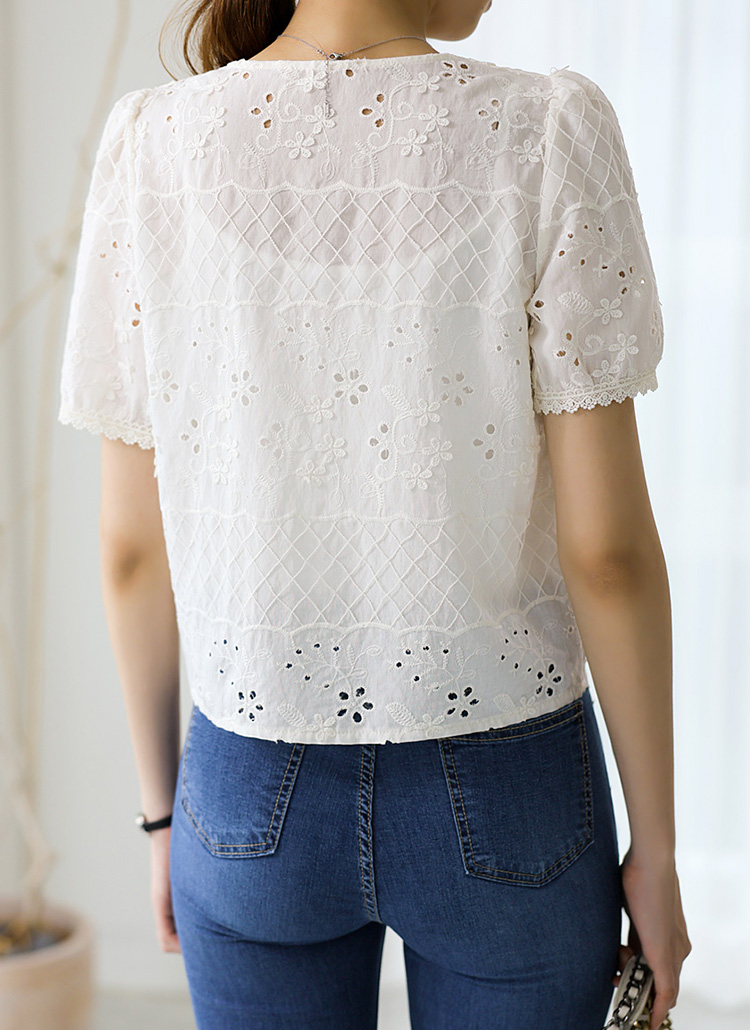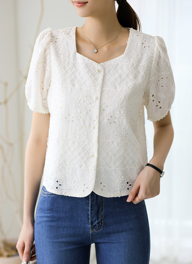 ハートネックフラワーパンチングレースブラウス bl40878