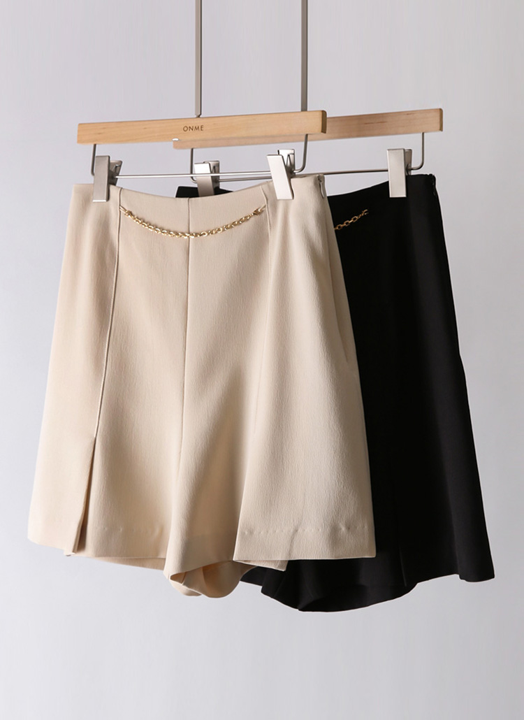 ゴールドチェーン付きタックプリーツショートパンツ pt40989