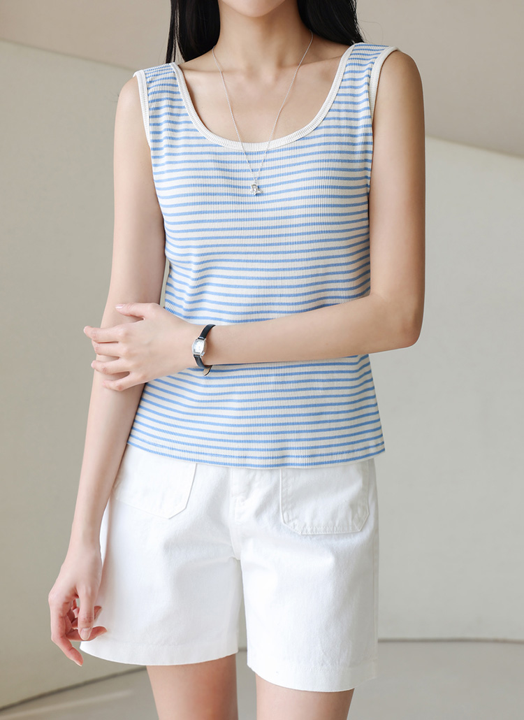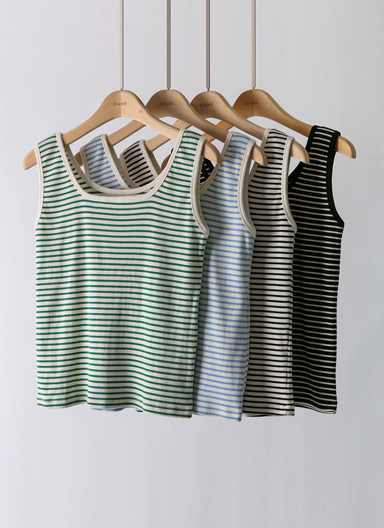 【4色展開】[THE ONME] スクエアネックボーダーリブタンクトップ sl41004