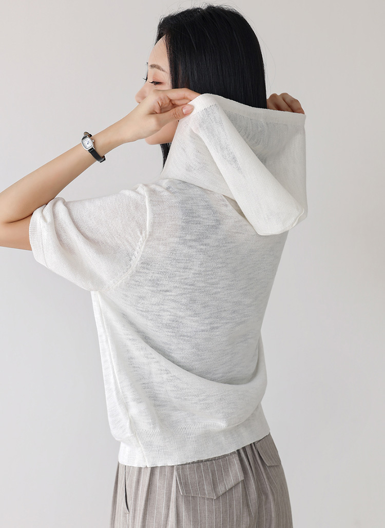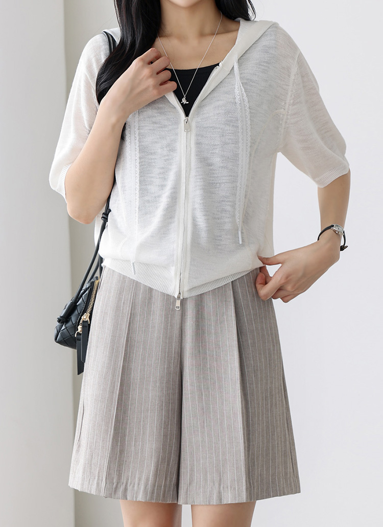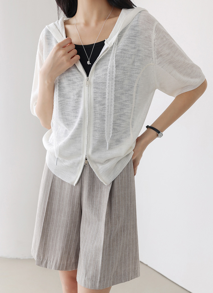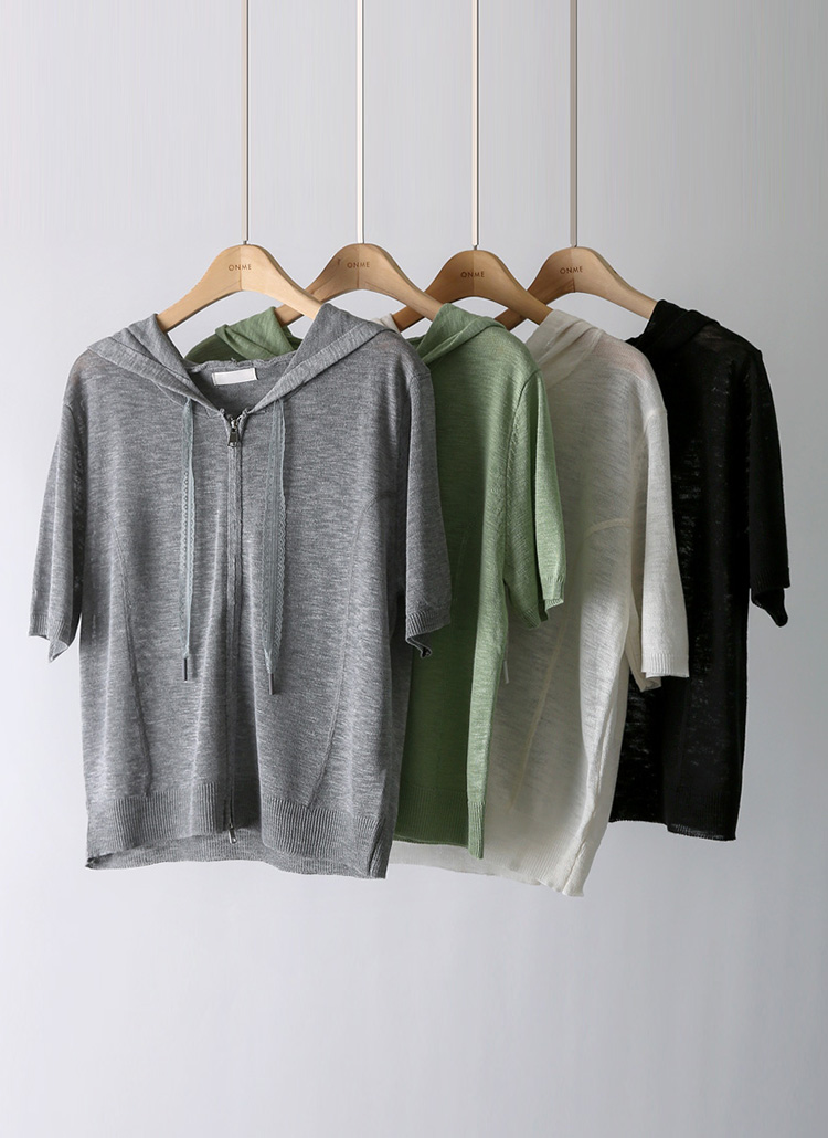 [THE ONME] レース紐スラブニット半袖ダブルジップパーカー cd41073