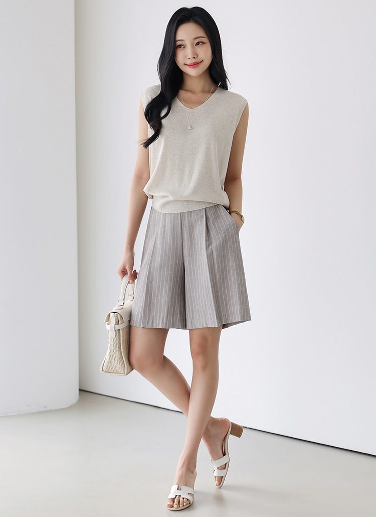 [THE ONME] リネンブレンドノースリブVネックニット sl41076