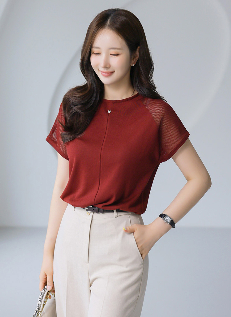 어깨 부분의 시스루한 메쉬 짜임이 포인트가 되어주며