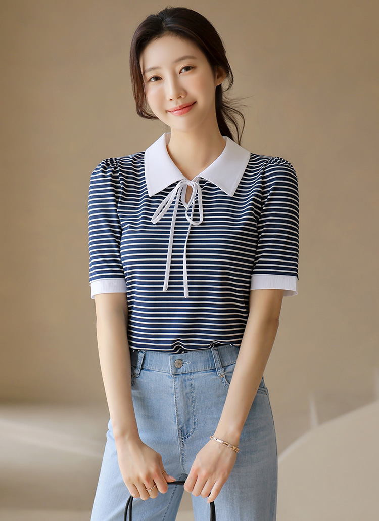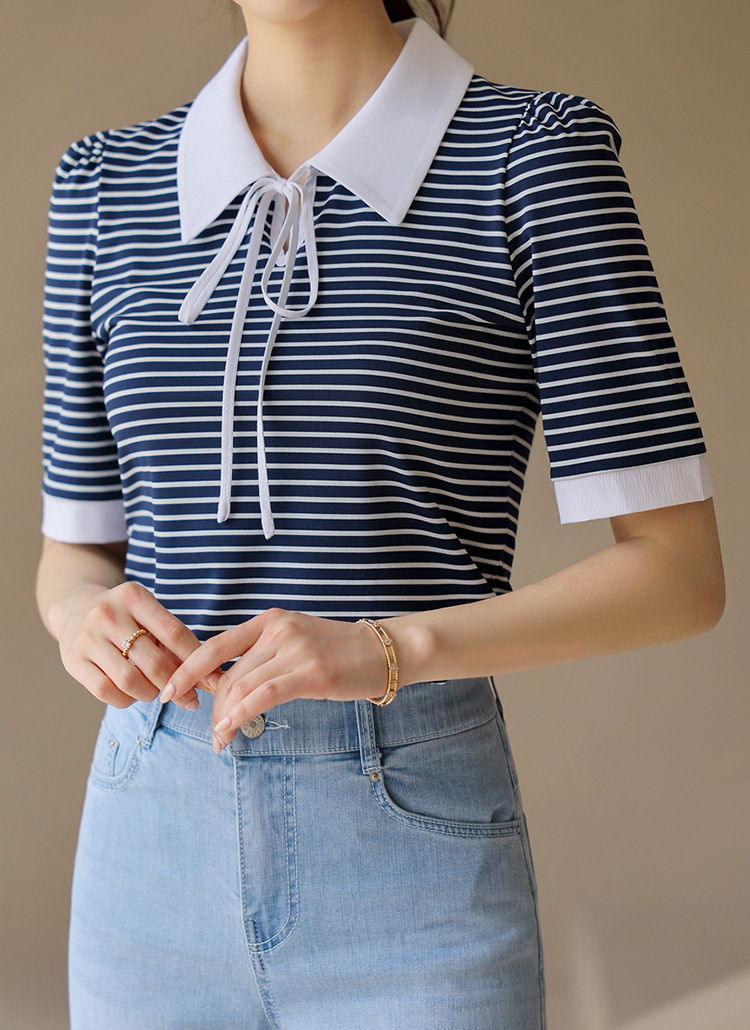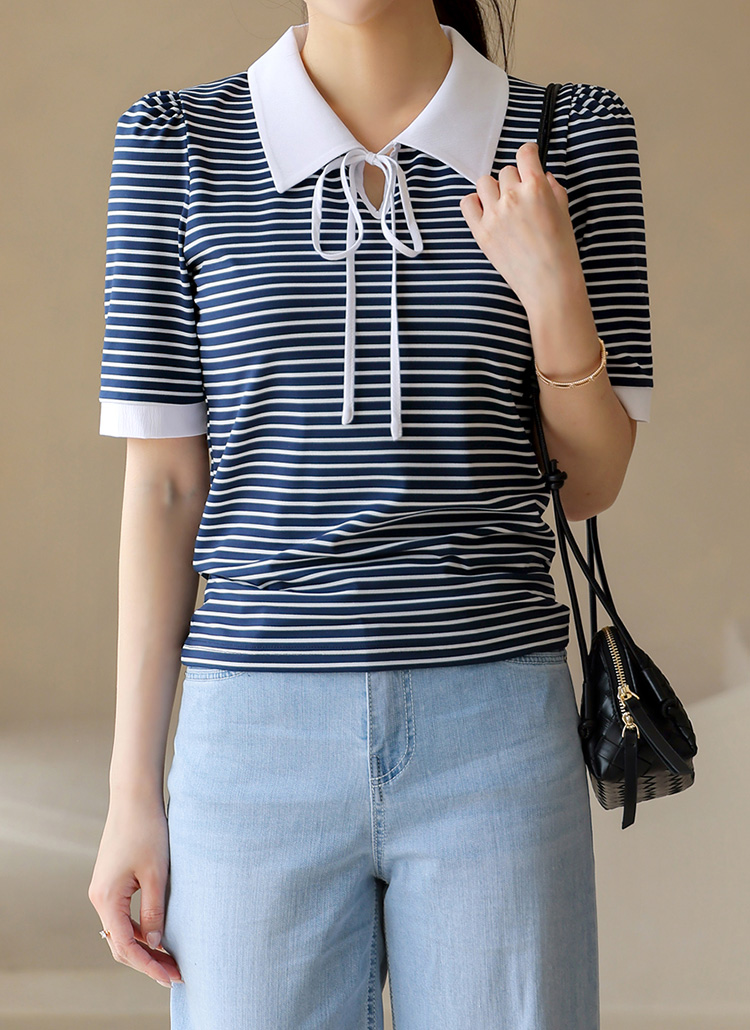 [LouisAngel] ボーダーリボンタイポロTシャツ ts41181