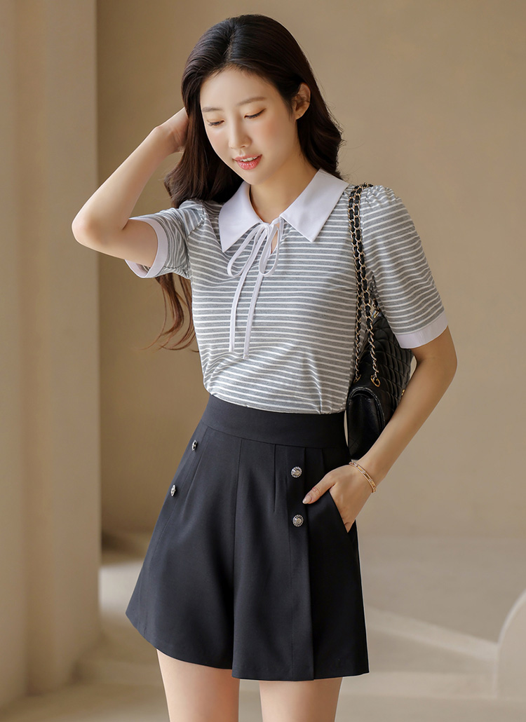 리본 카라 디자인으로 여성스러움을 강조하고