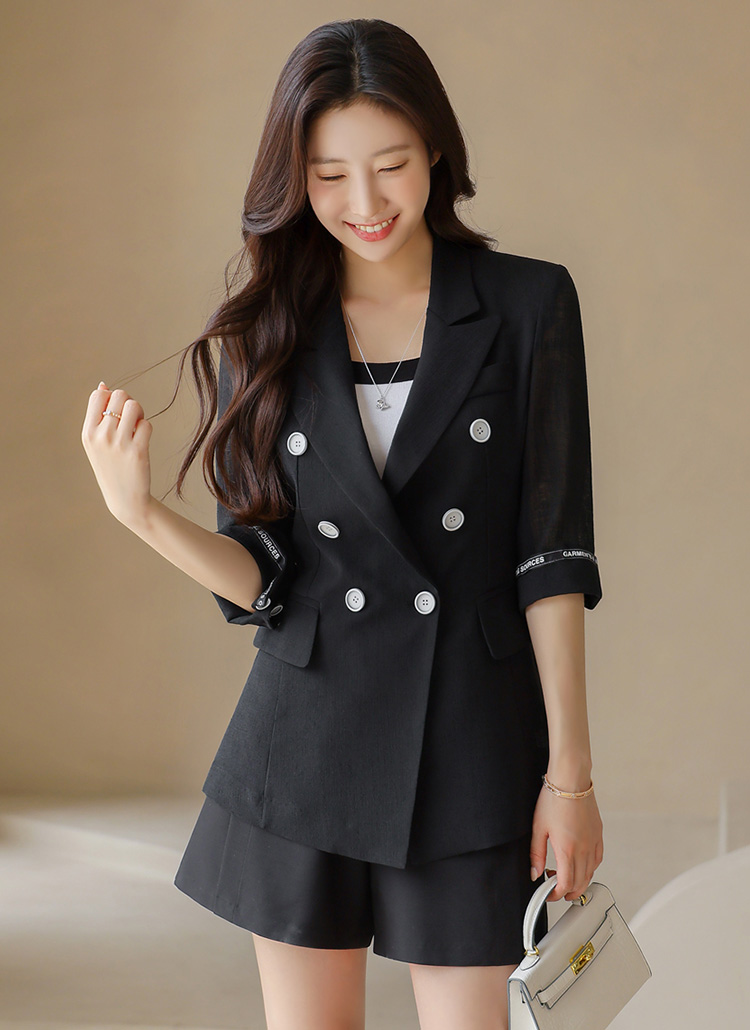 더블버튼과 핀턱 디테일로 고급스러움을 강조한
