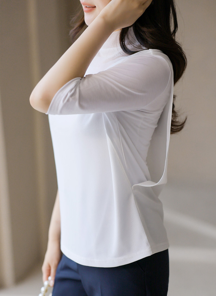 가볍게 차르르 떨어지는 원단에 시원한 망사 원단이 레이어드되어