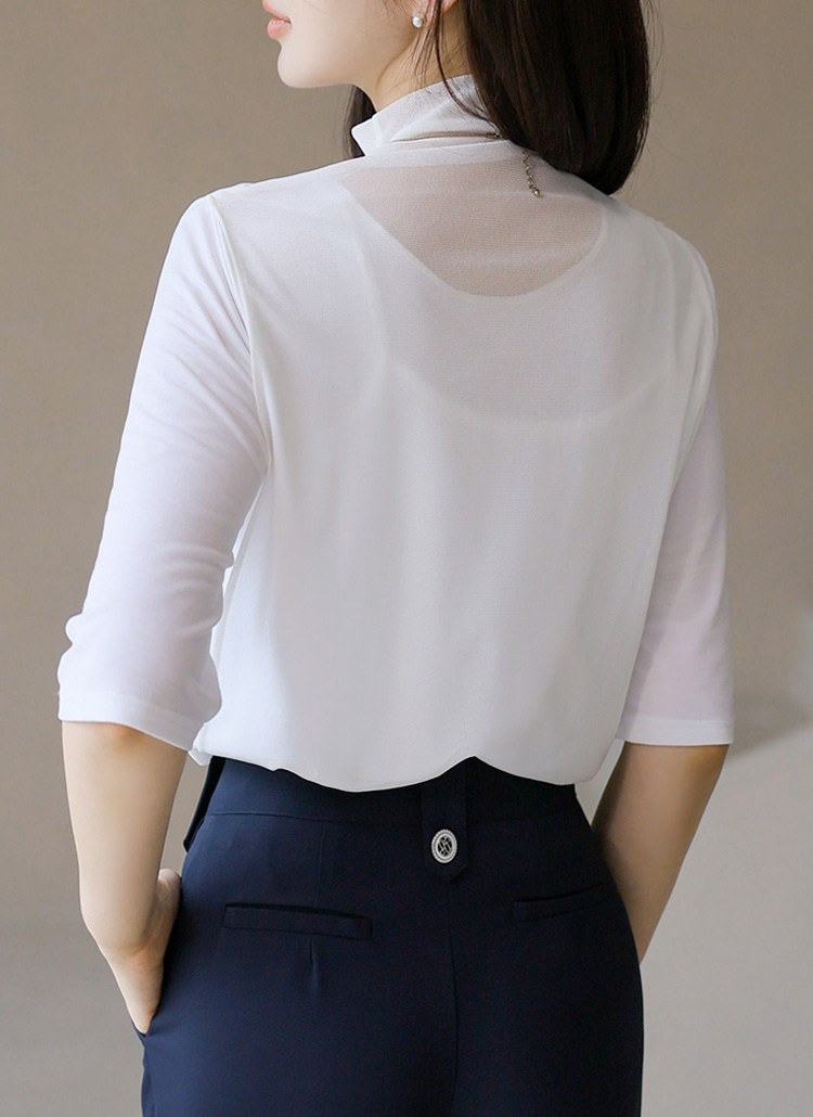 【4色展開】チュールネック5分袖ドレーププルオーバー ts41196