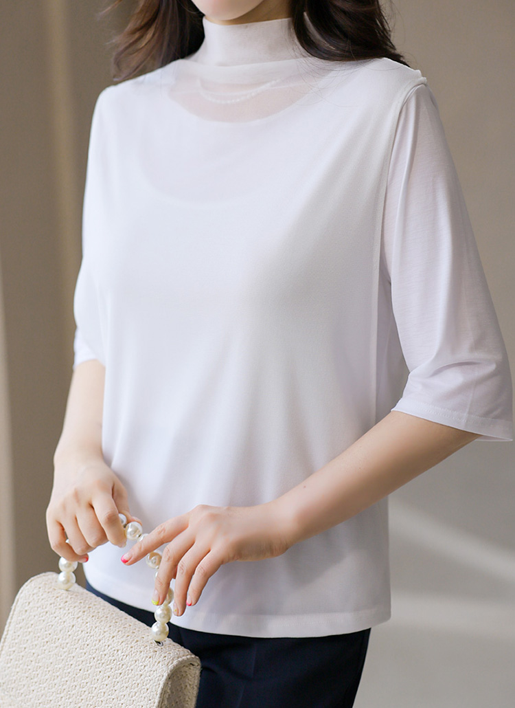 심플하면서 세련된 멋으로 즐기시기 좋은 반하이넥 5부 소매 티셔츠에요 :)