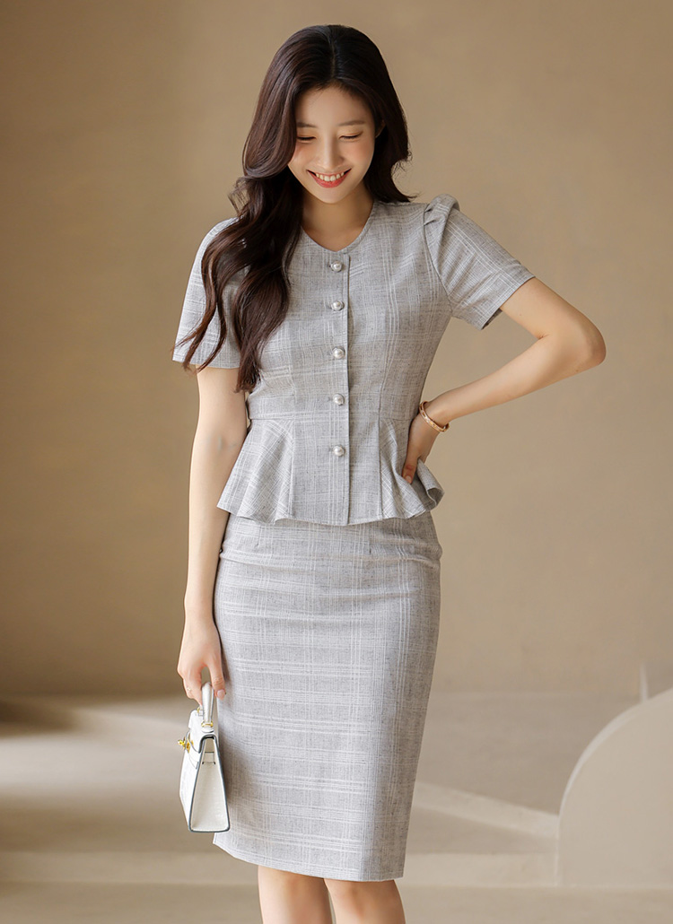 페플럼 라인으로 허리를 강조해주어 여성스러운 실루엣을 완성하며