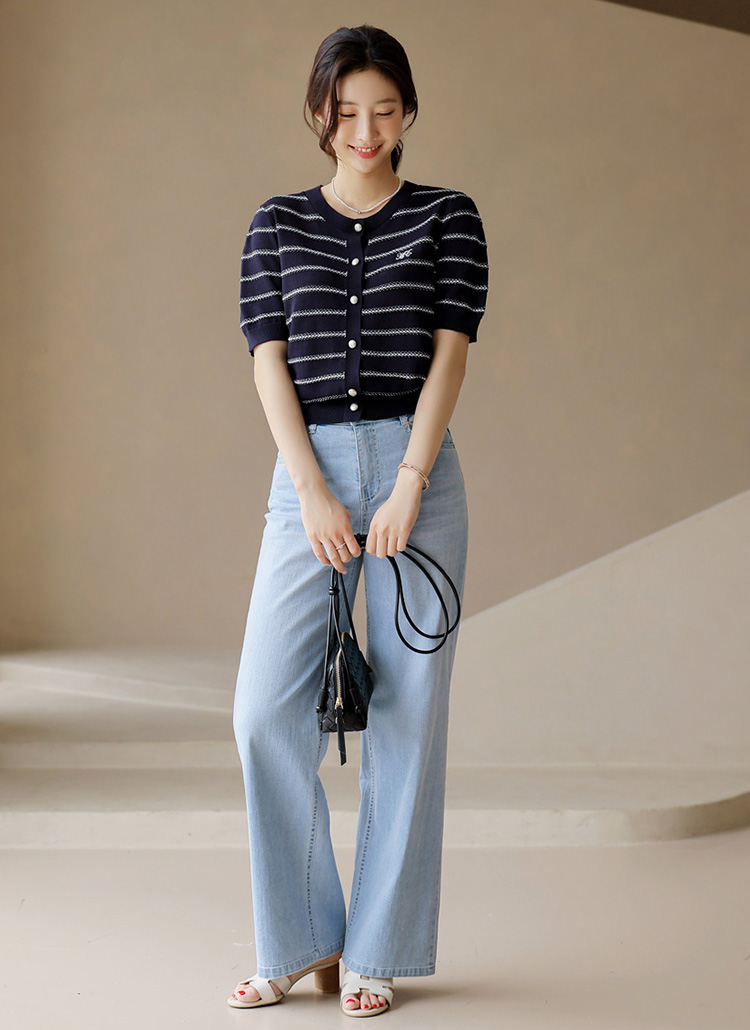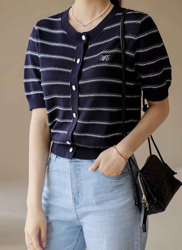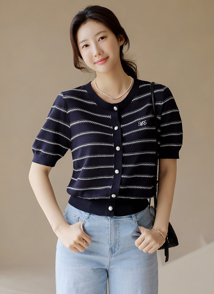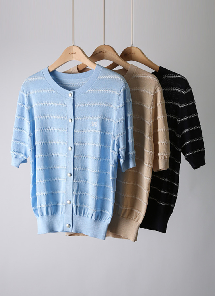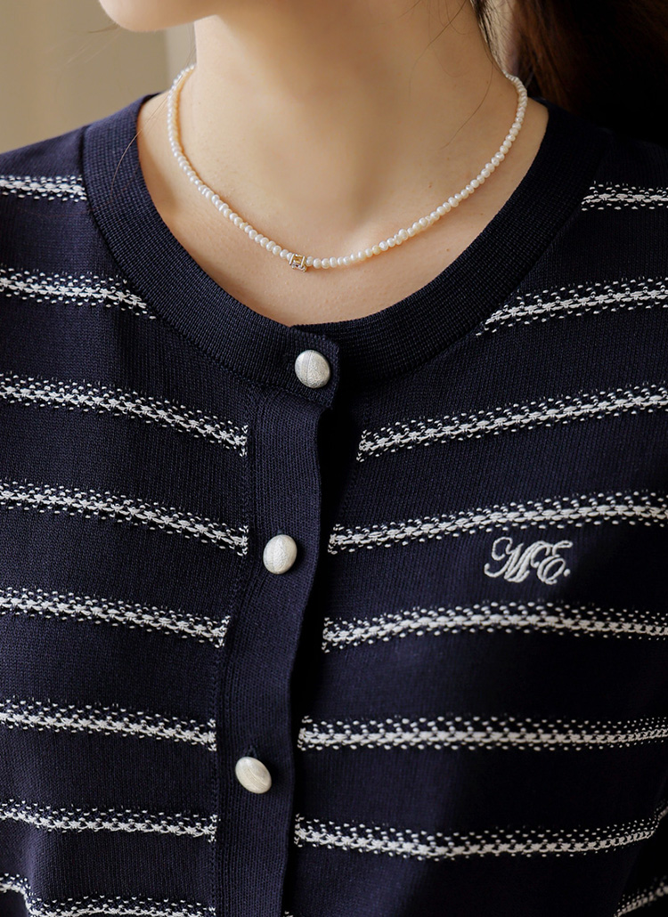 シルバーボタン サマーボーダーニットカーディガン cd41292