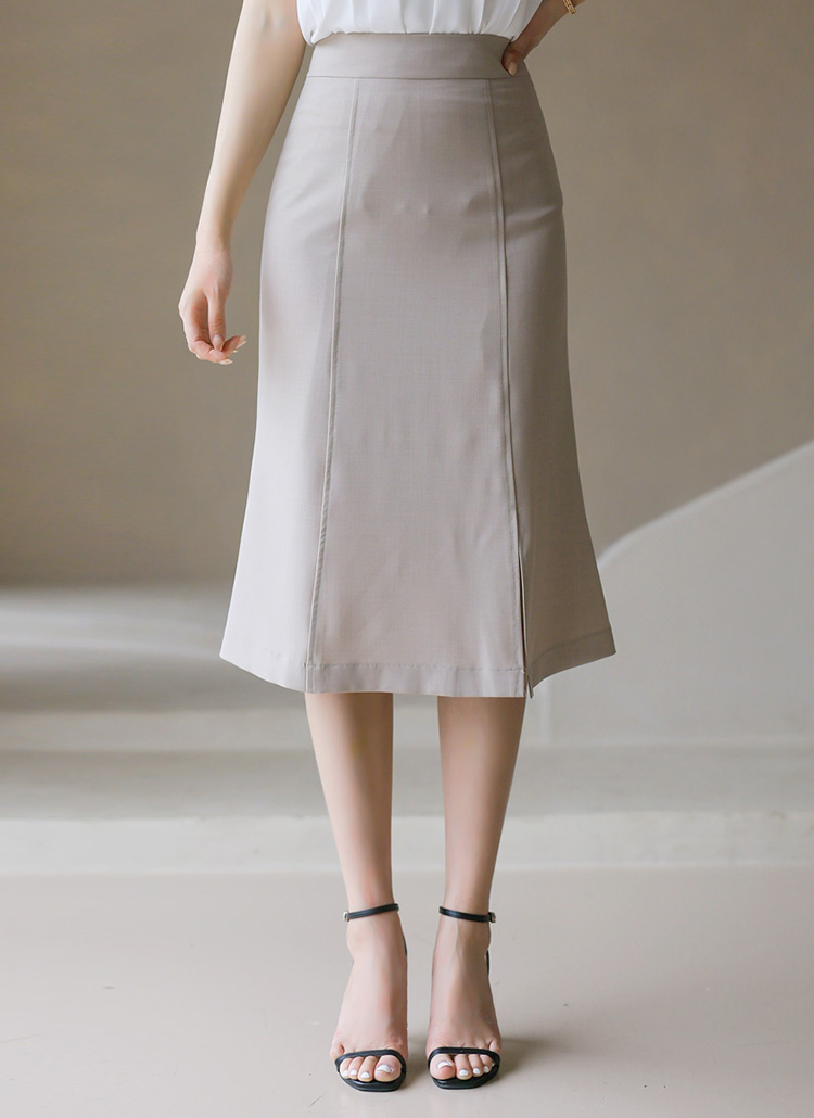 세련된 절개라인이 돋보이는 머메이드 스커트로