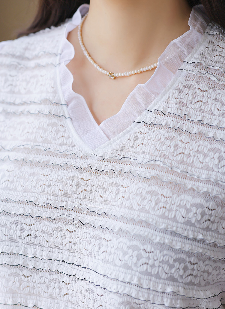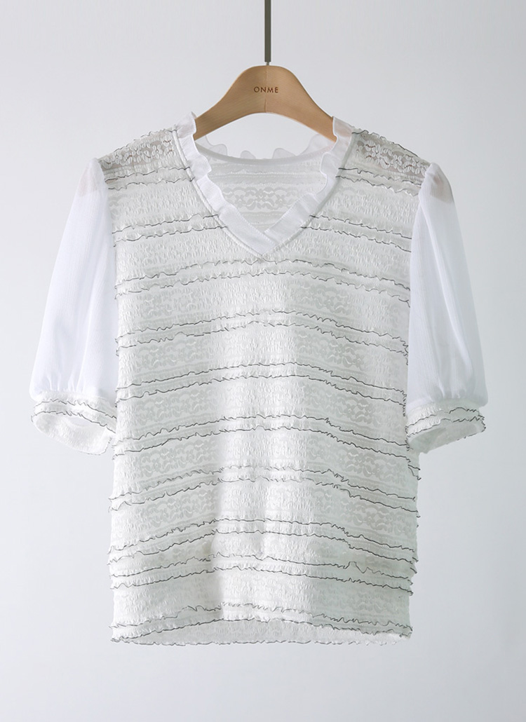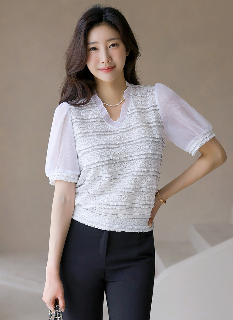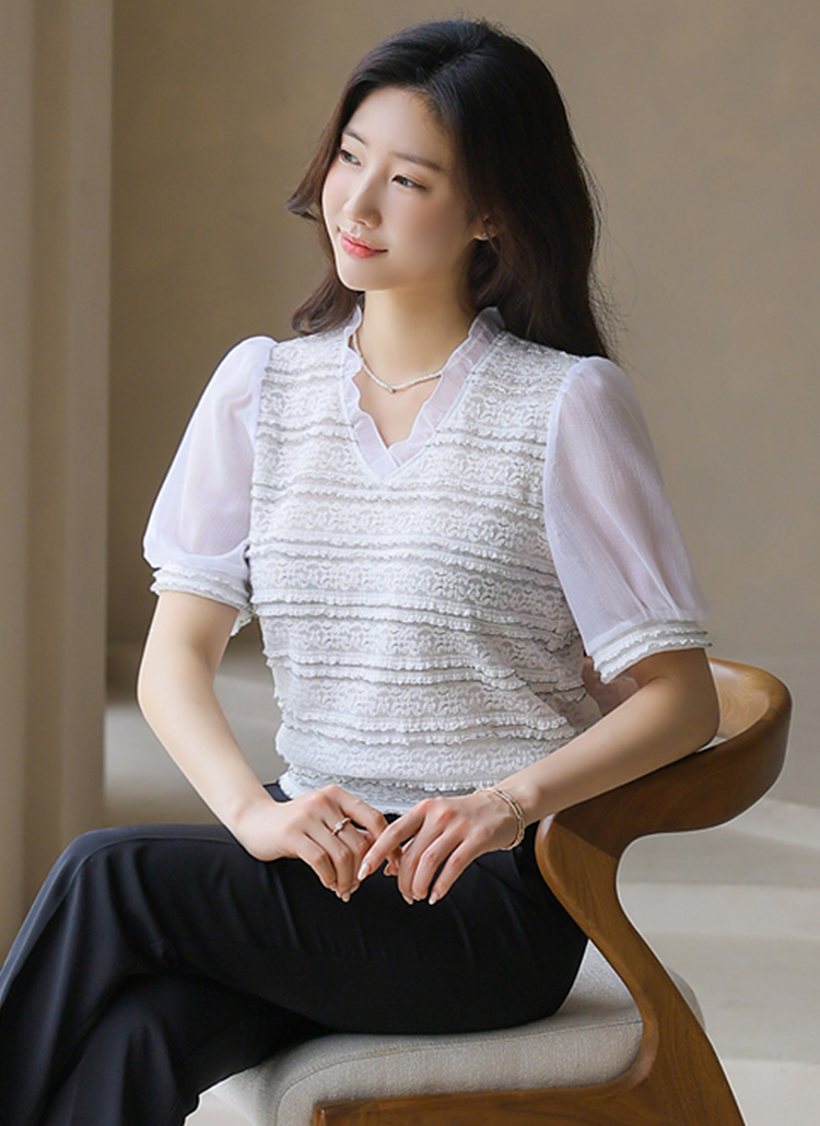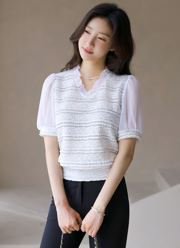 [LouisAngel] シアースリーブフリルレースブラウス bl41334