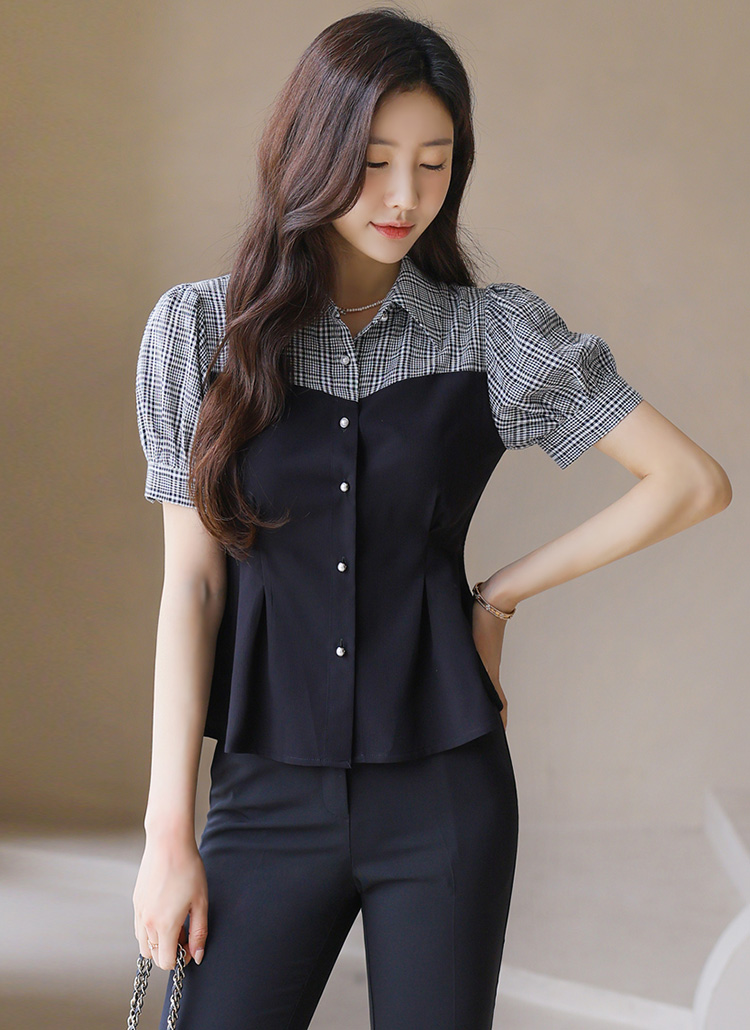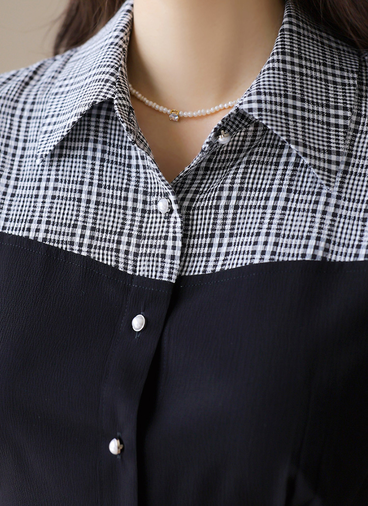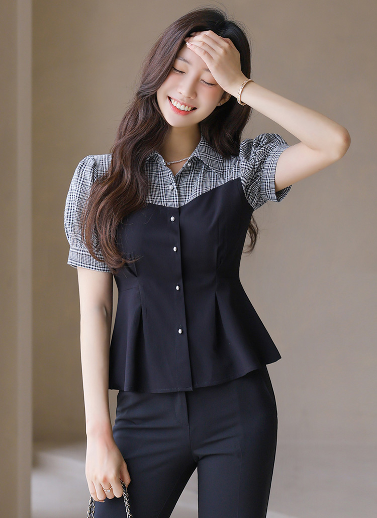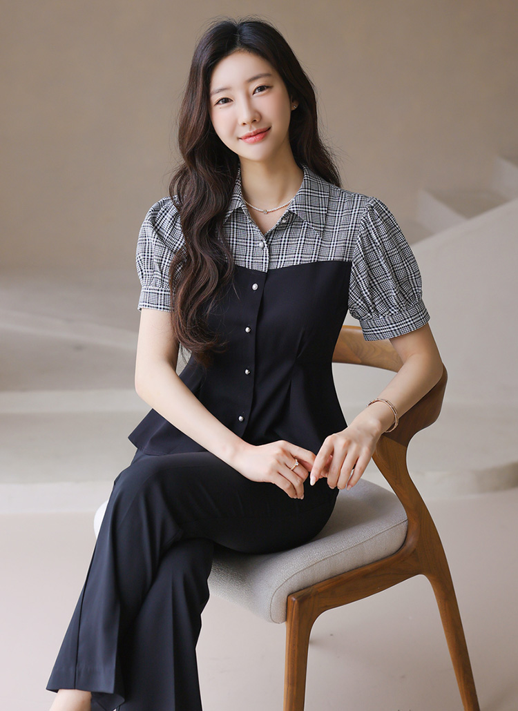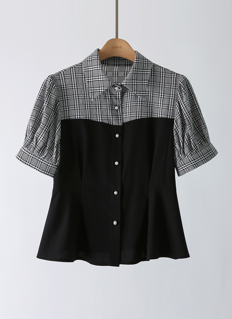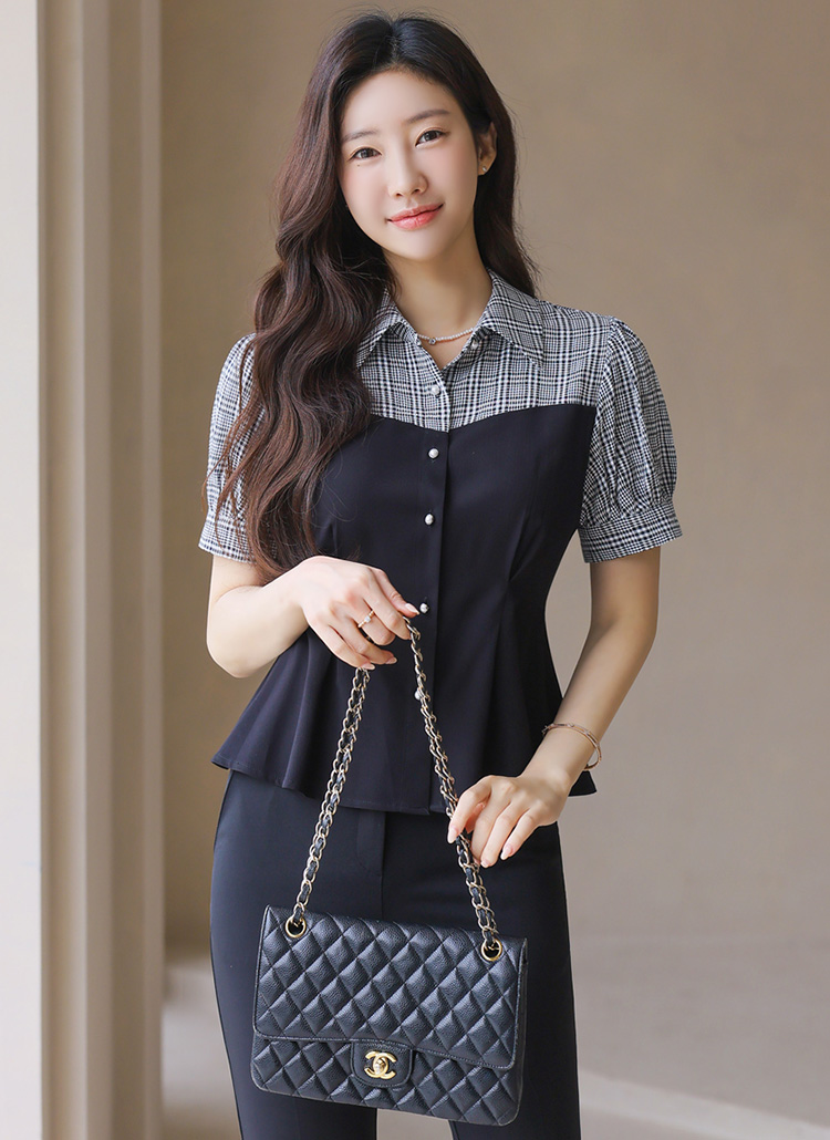 [LouisAngel] チェック切り替えペプラムブラウス bl41373