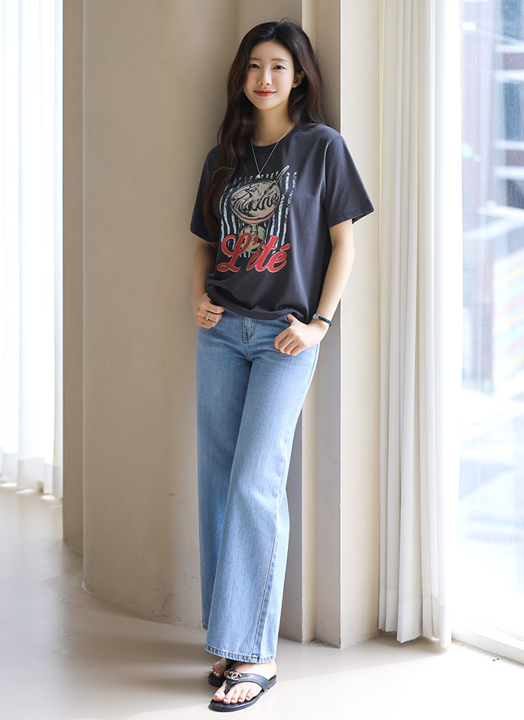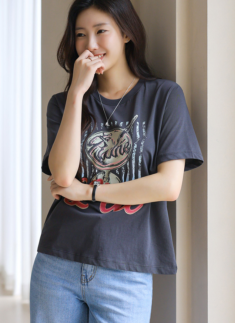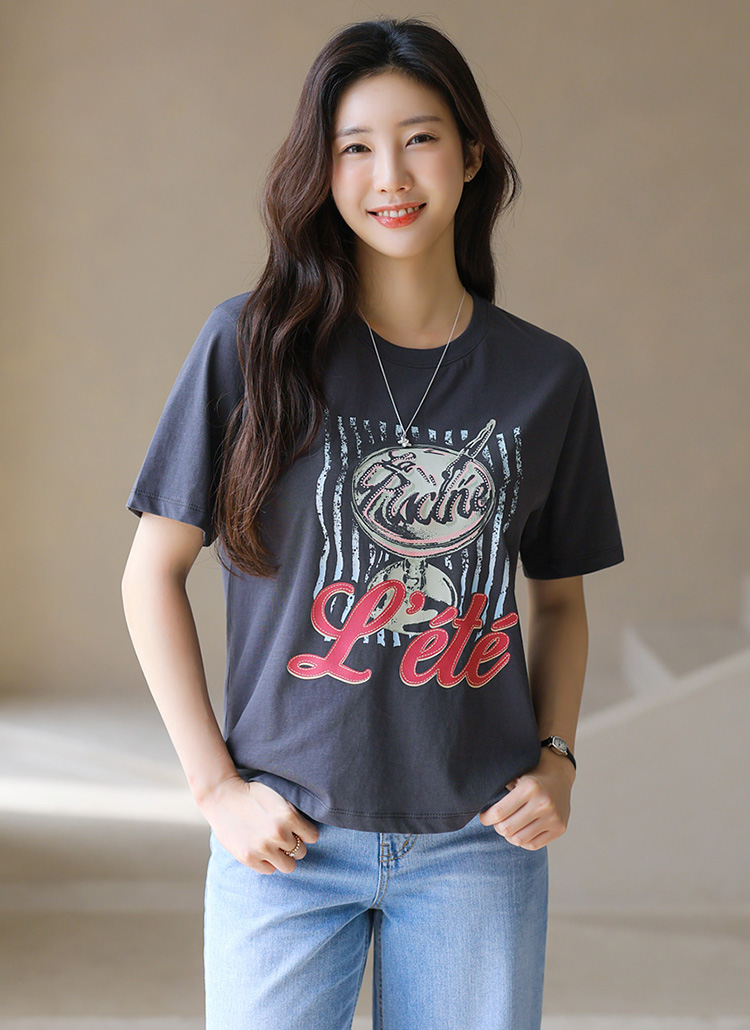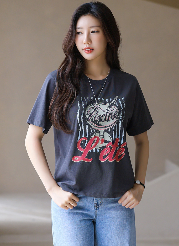 ラインストーン付きビンテージプリントTシャツ ts41429