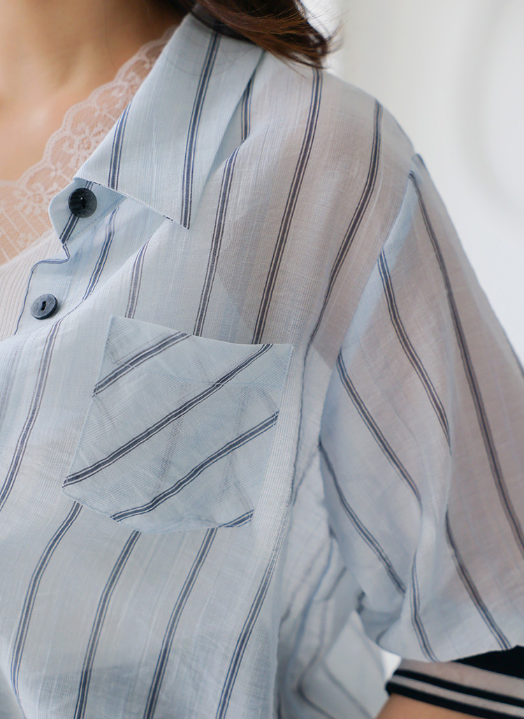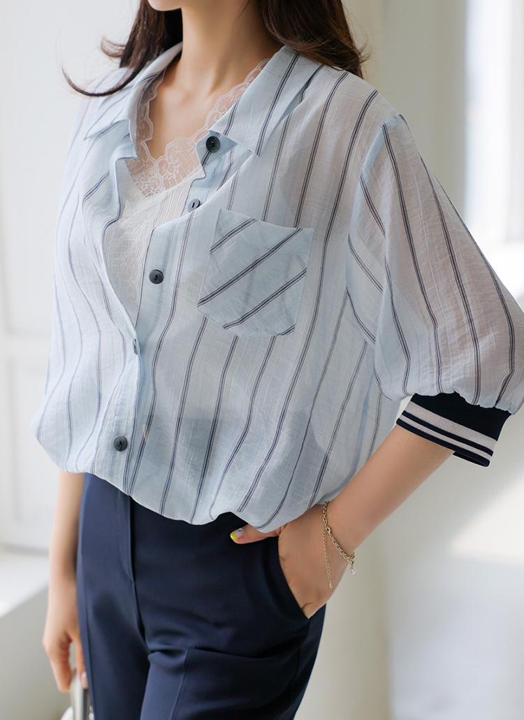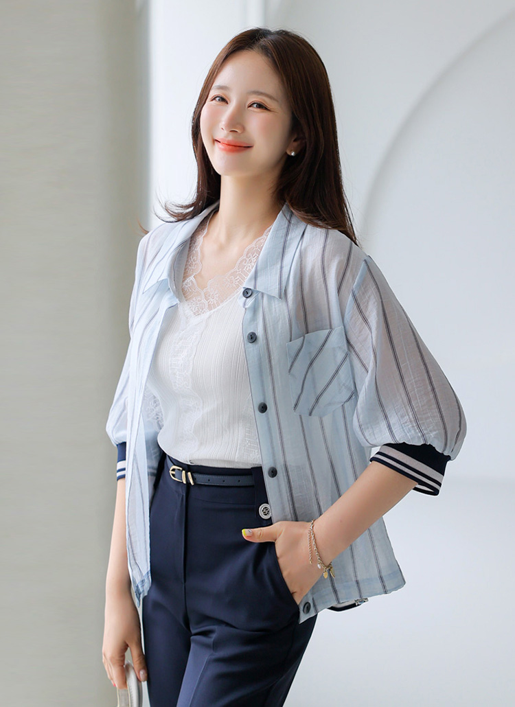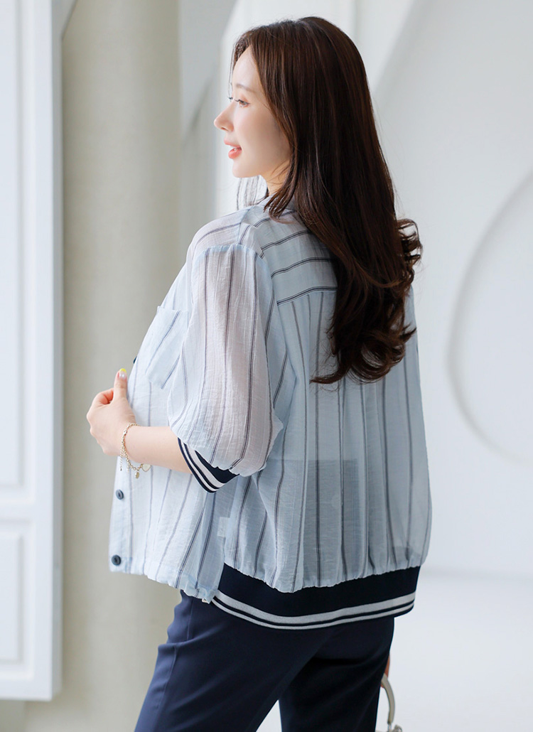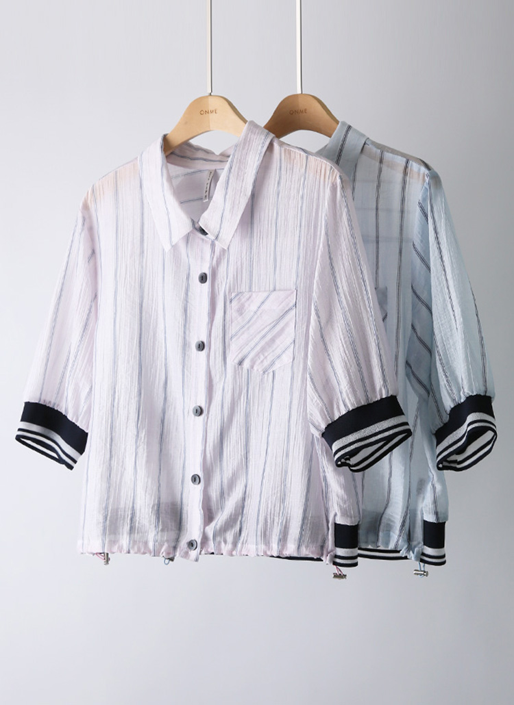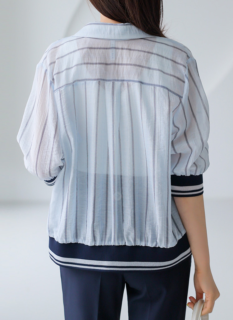 シースルーストライプ 7分袖シャツジャケットjk41507