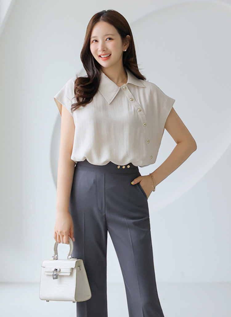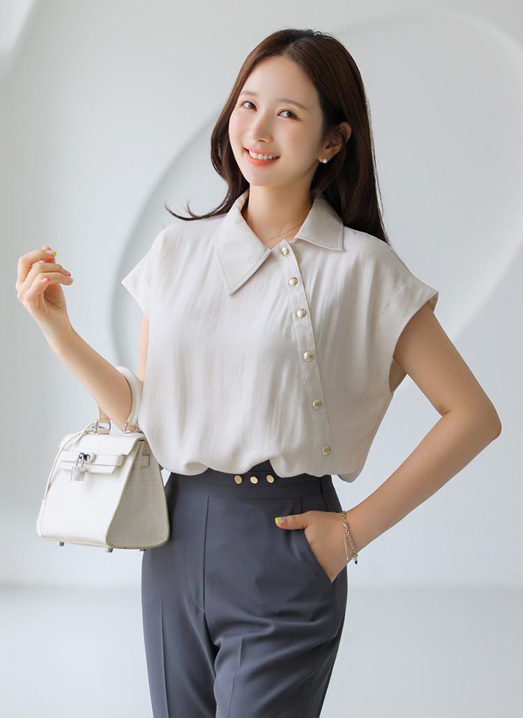 アシメゴールドボタンブラウス bl41540