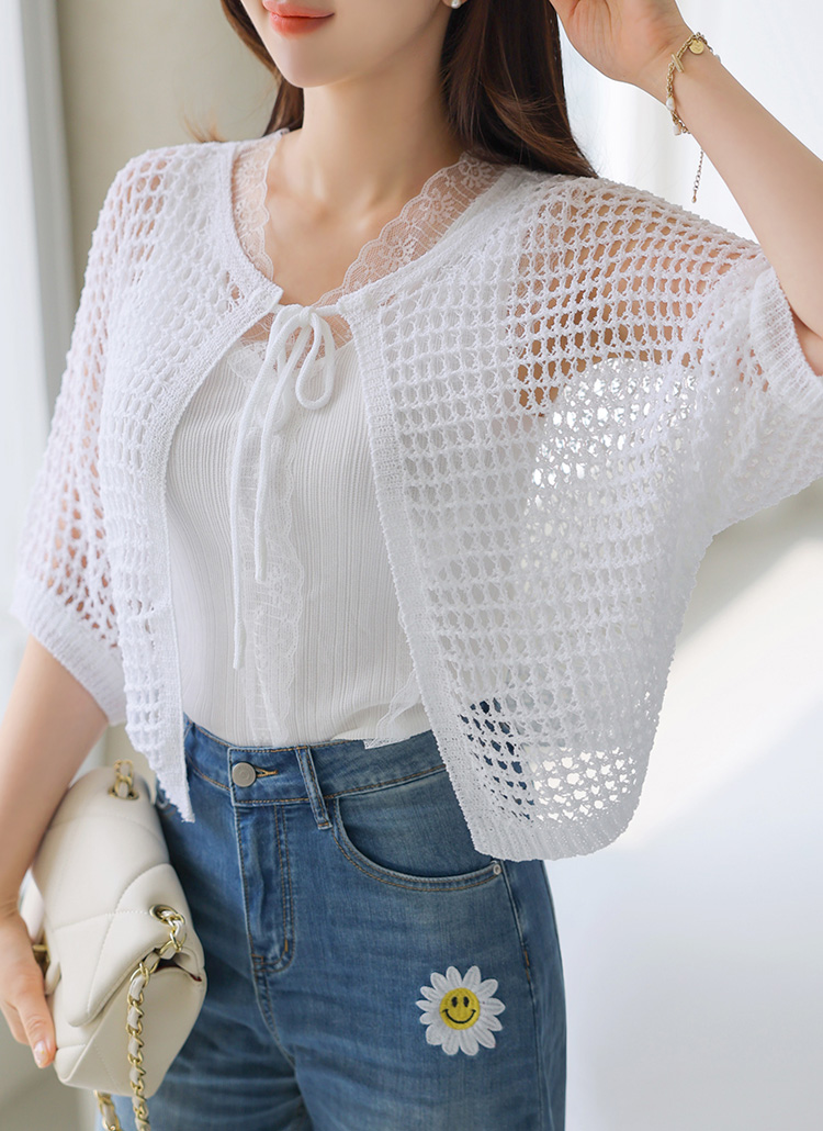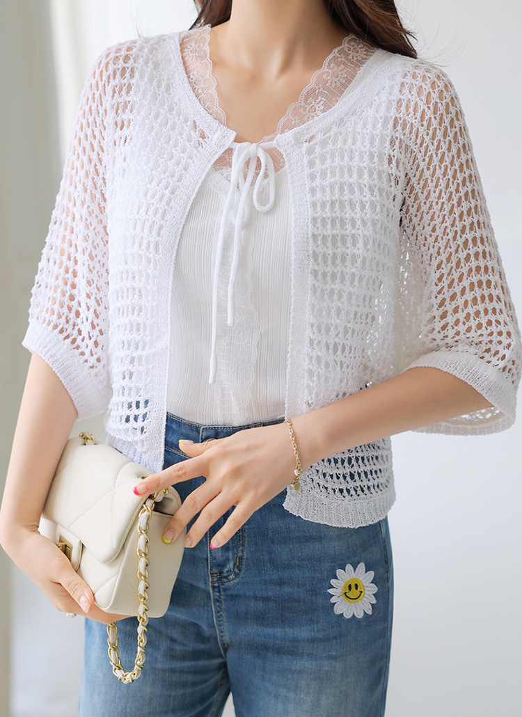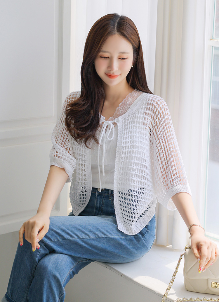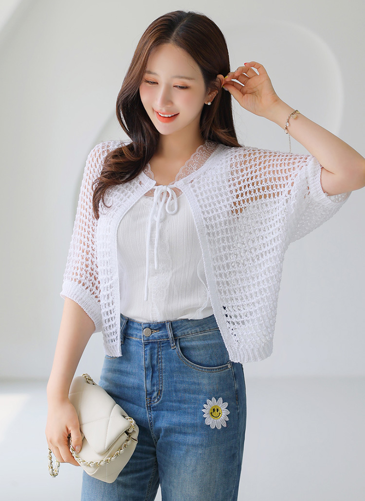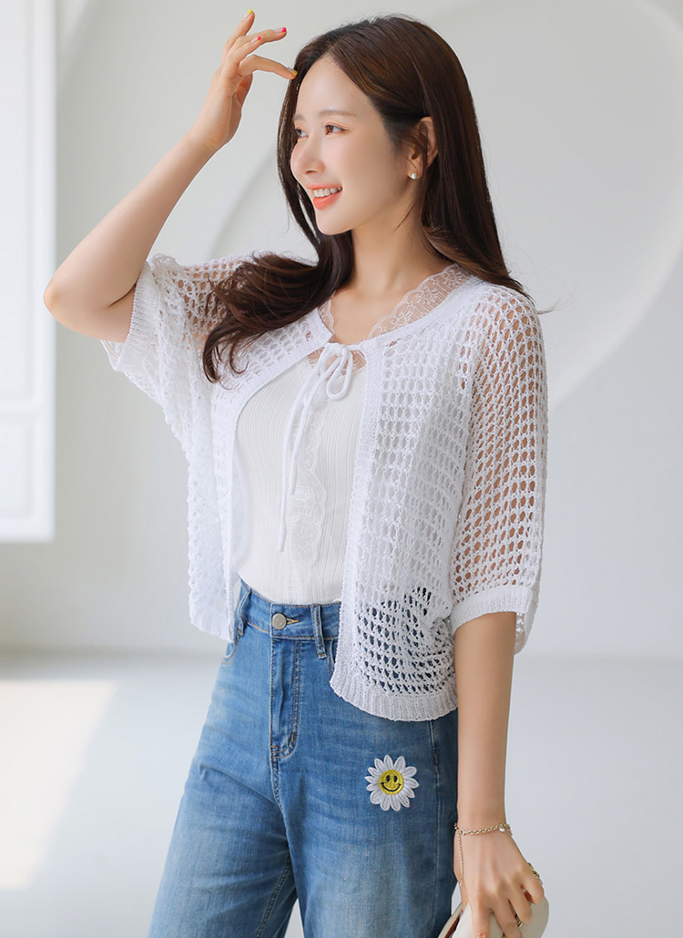레이네 바람 솔솔 펀칭 니트 볼레로 가디건이에요 :)