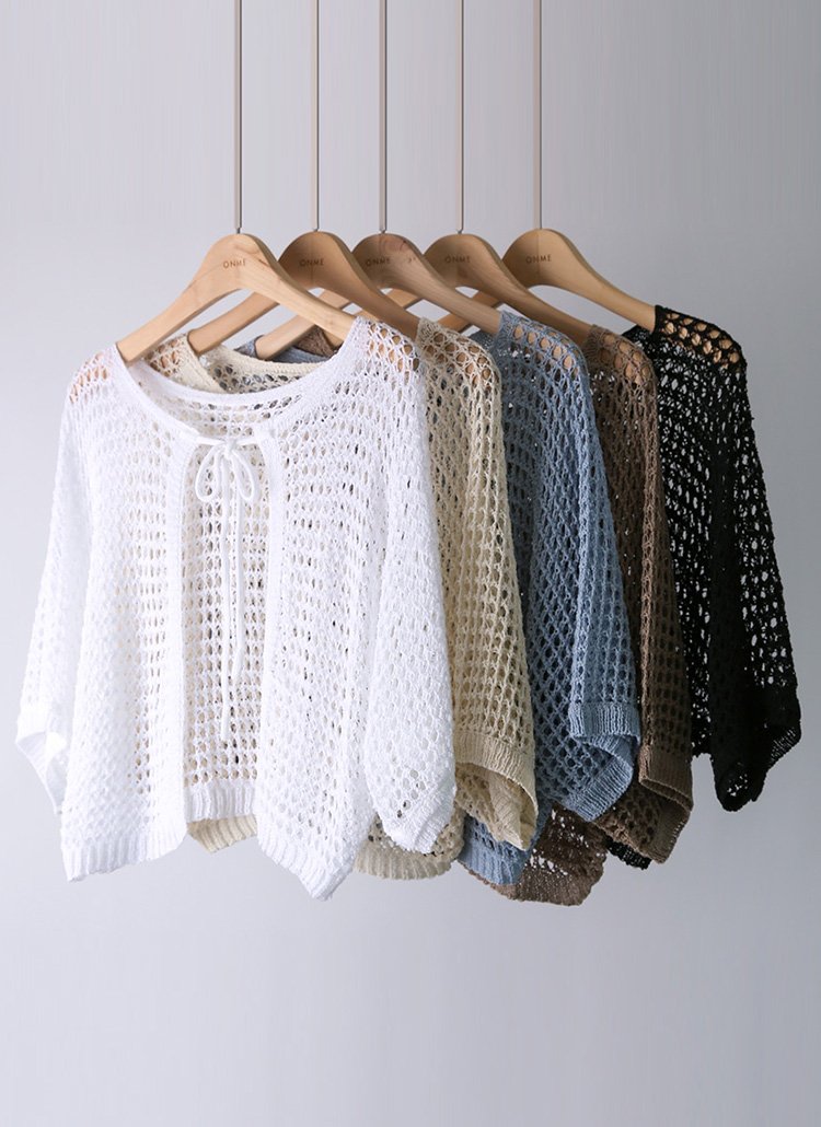 【5色展開】透かし編みフロントリボンメッシュニットカーディガン41600