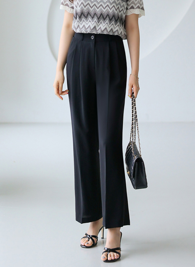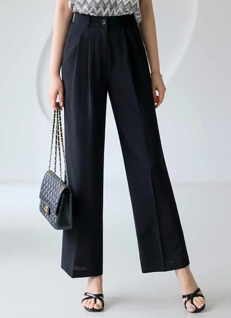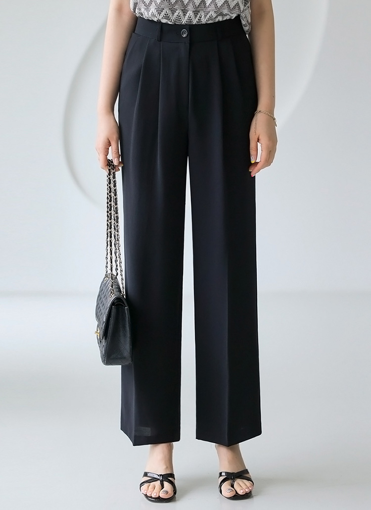 투 핀턱으로 잡아준 세미 와이드 핏이 늘씬하고 길어 보이는 레그 라인을 선사한답니다