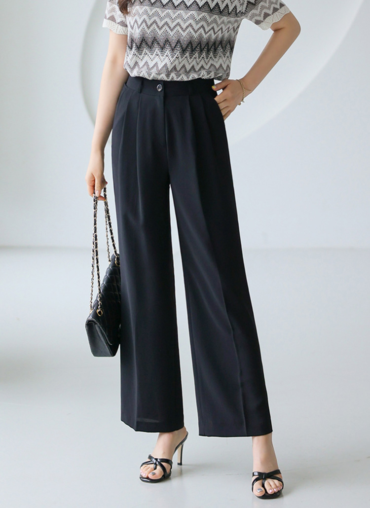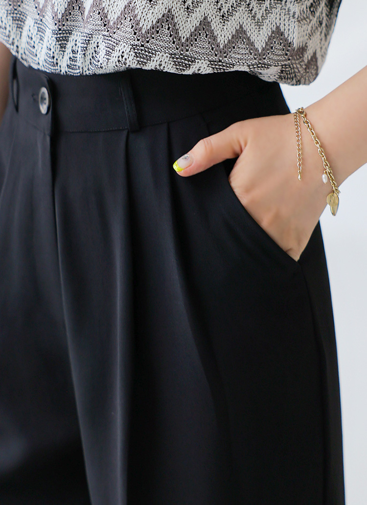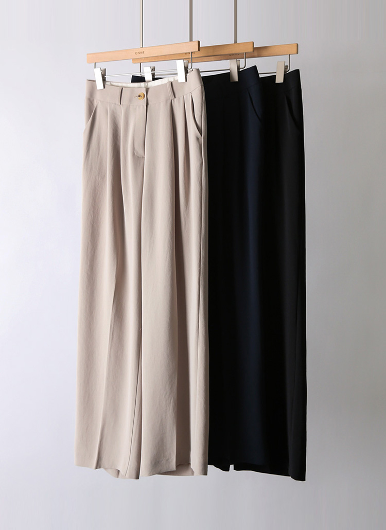 투 핀턱으로 잡아준 세미 와이드 핏이 늘씬하고 길어 보이는 레그 라인을 선사한답니다