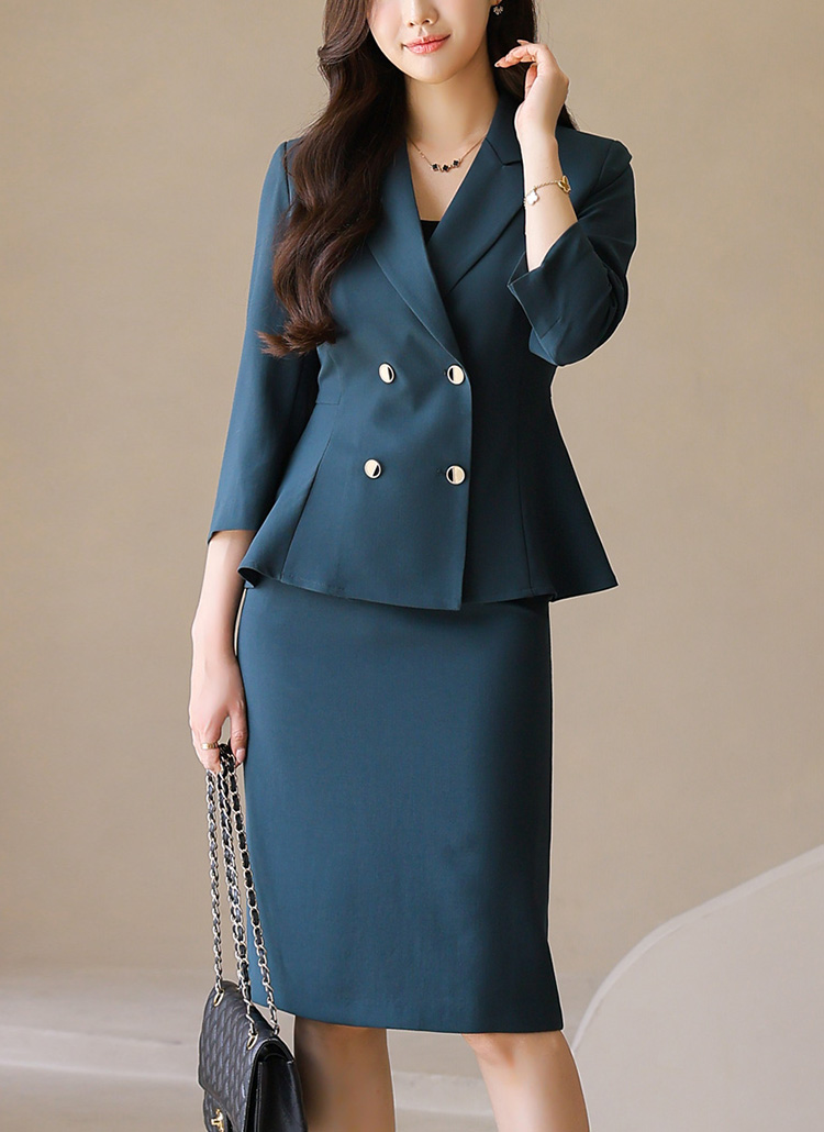 에르체 7부 소매 테일러드 완벽 라인 페플럼 더블 자켓 과