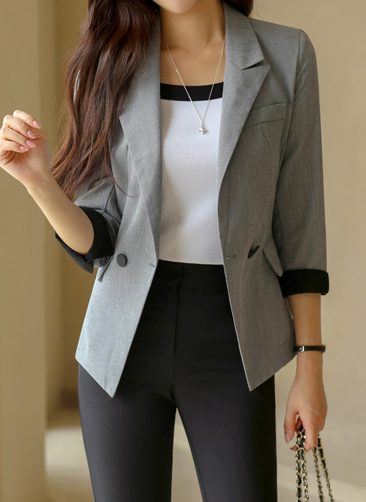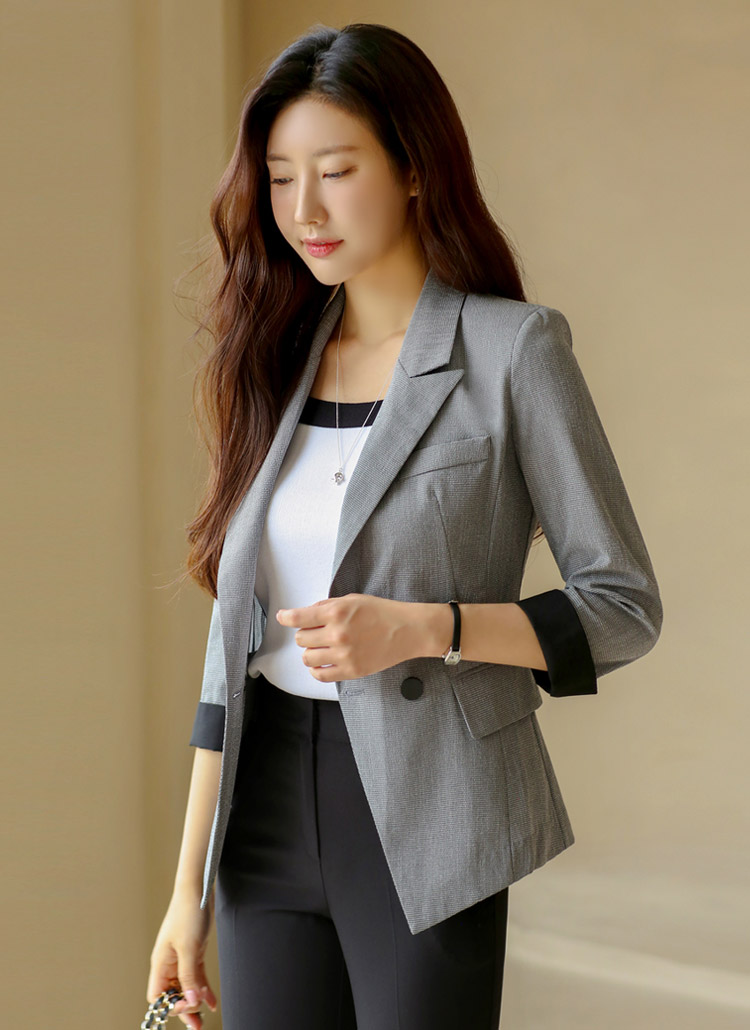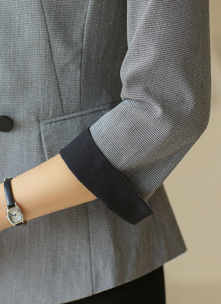 7分袖配色チェックスリムジャケット jk41632