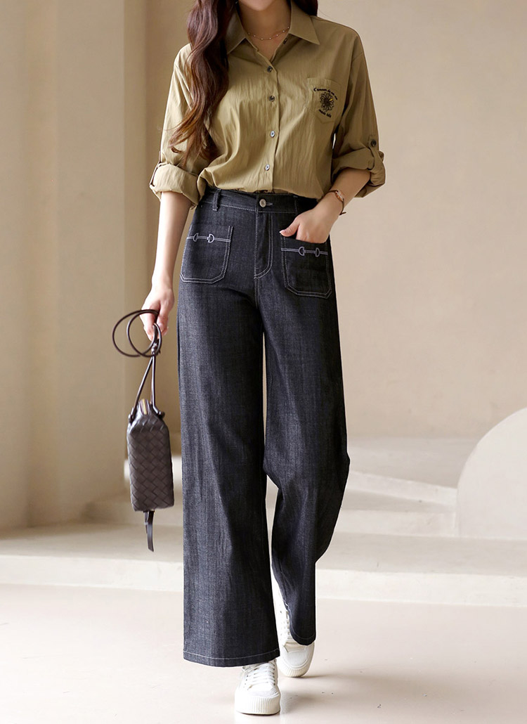 포켓에 더해진 자수 디테일이 포인트가 되어
