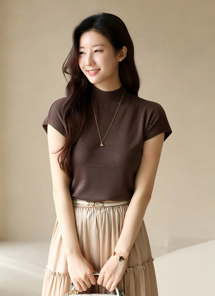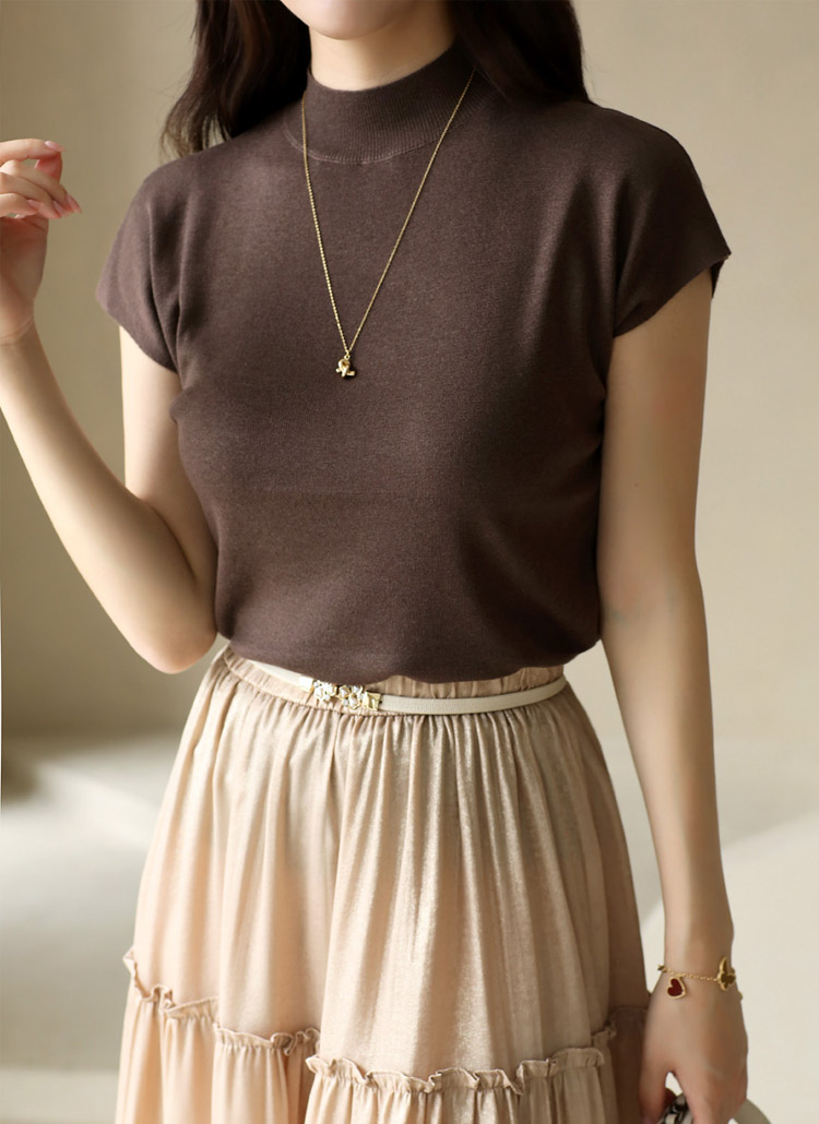 【5色展開】ハイネックキャップスリーブニットトップス nt41662
