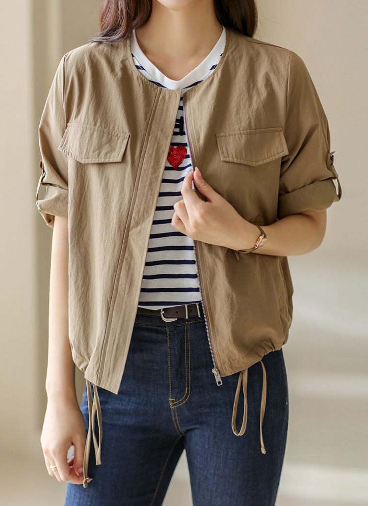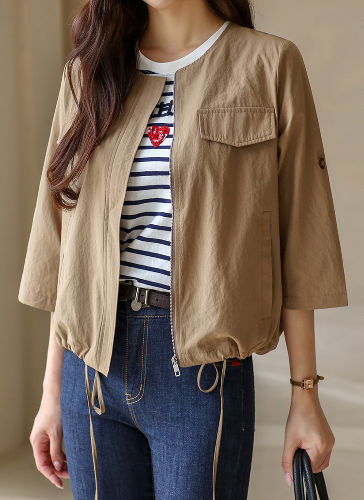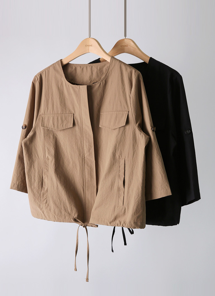 노카라 디자인의 라운드넥으로 깔끔한 캐주얼 자켓이에요 :)