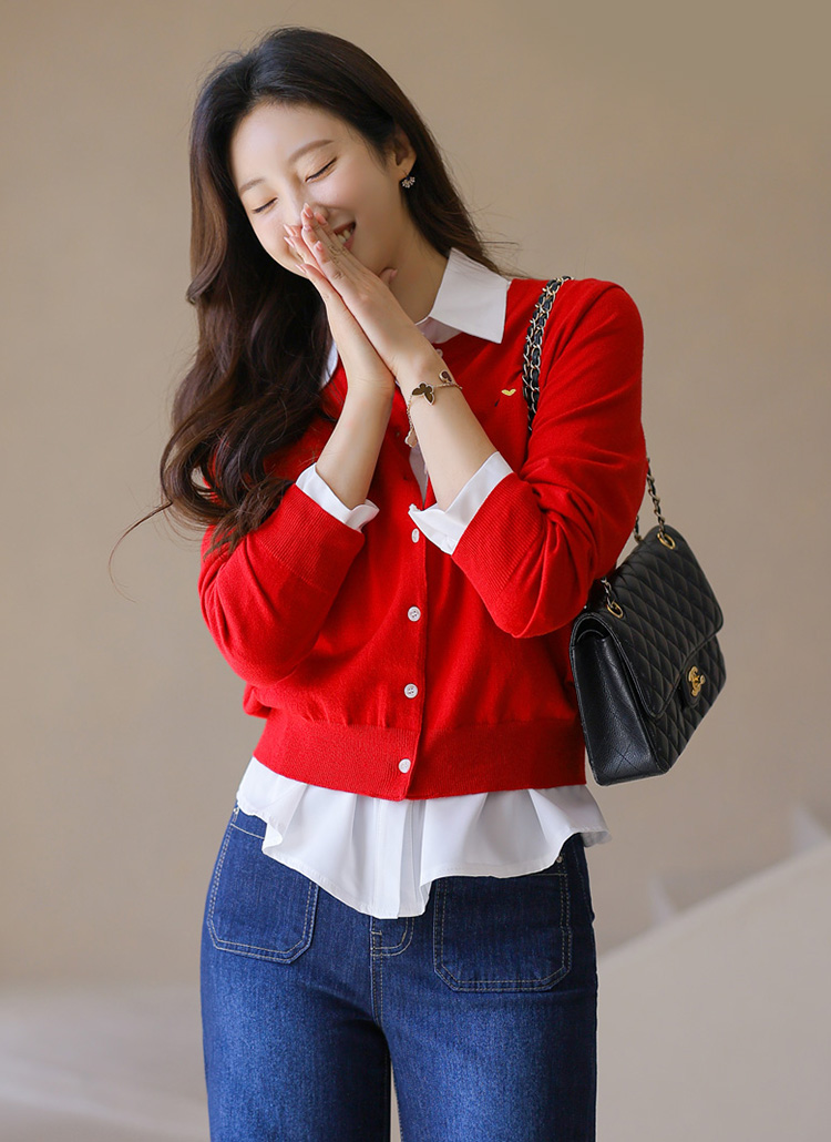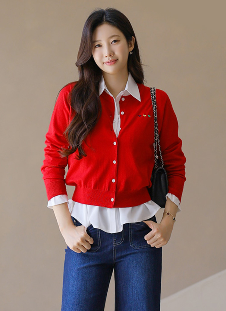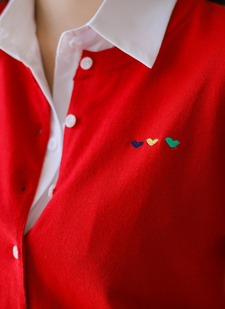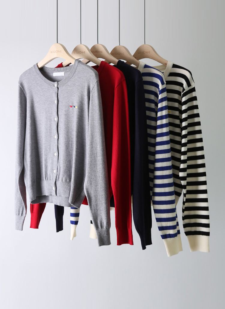 【無地&ボーダー】ハート刺繡ラウンドカーディガン cd41686
