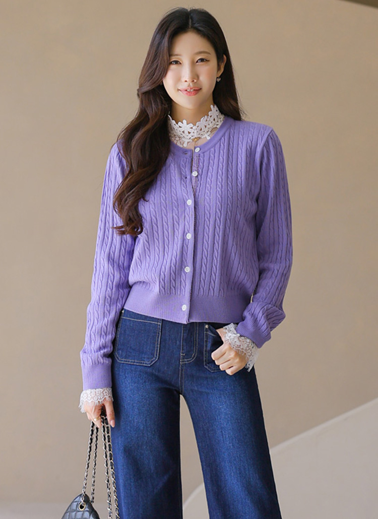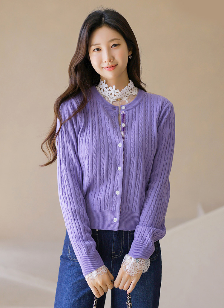 【4色展開】チェック配色ケーブルニットカーディガン cd41710