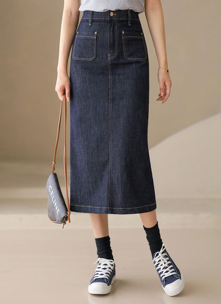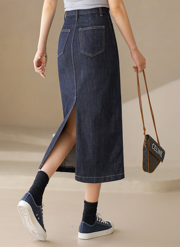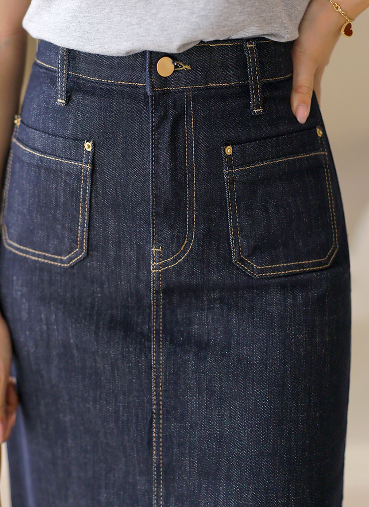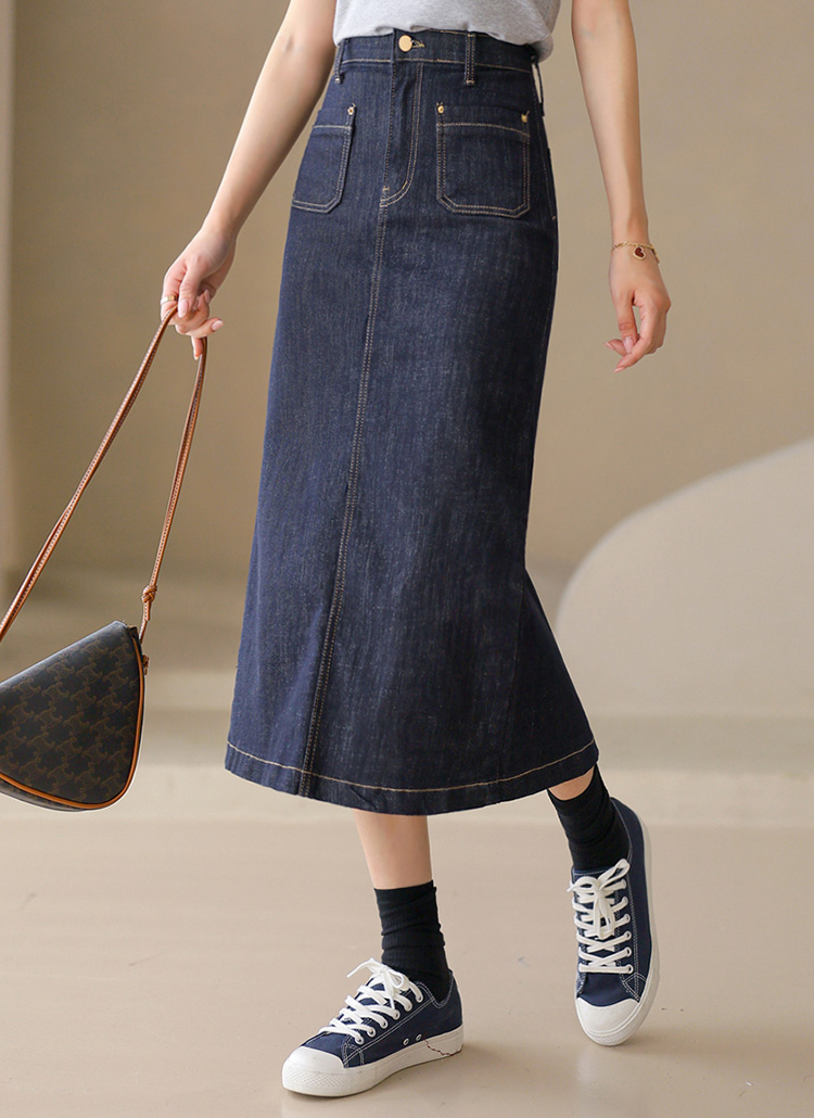 더 멋스럽고 캐주얼하게 즐기시기 좋은 H라인 롱 데님 스커트에요 :)