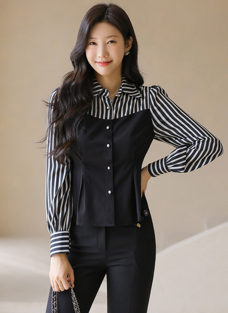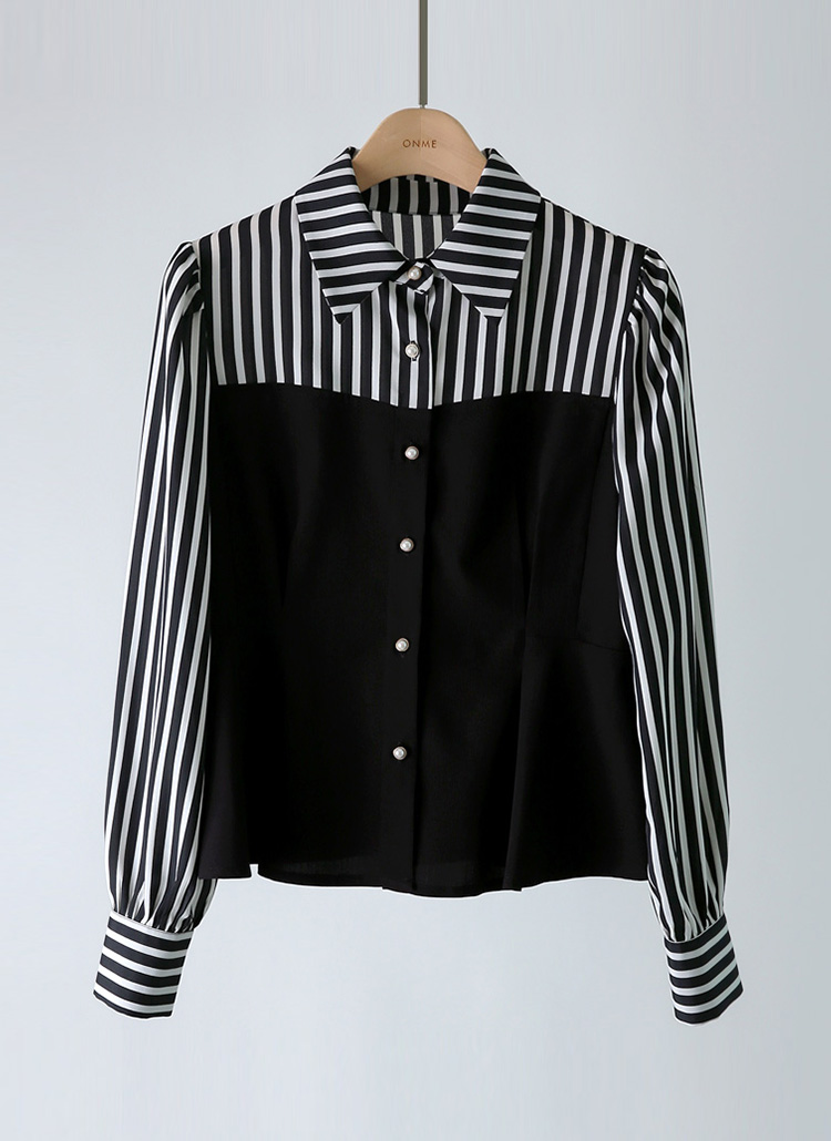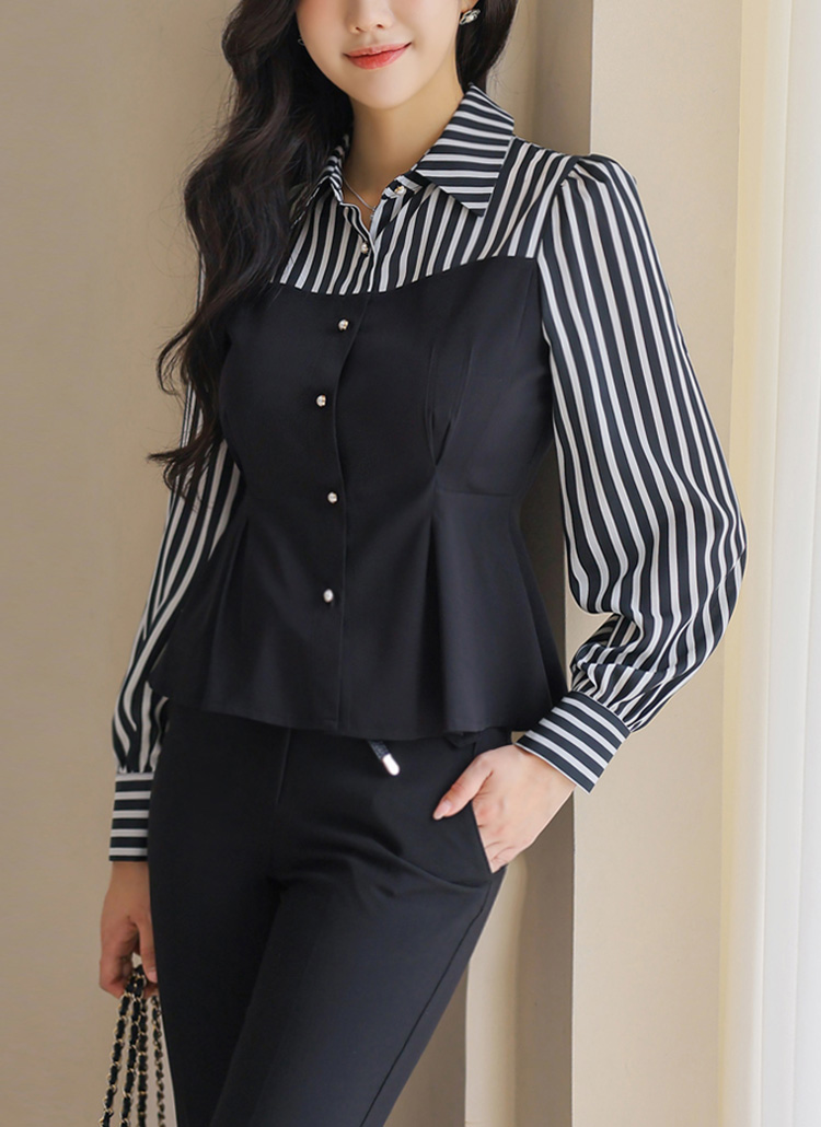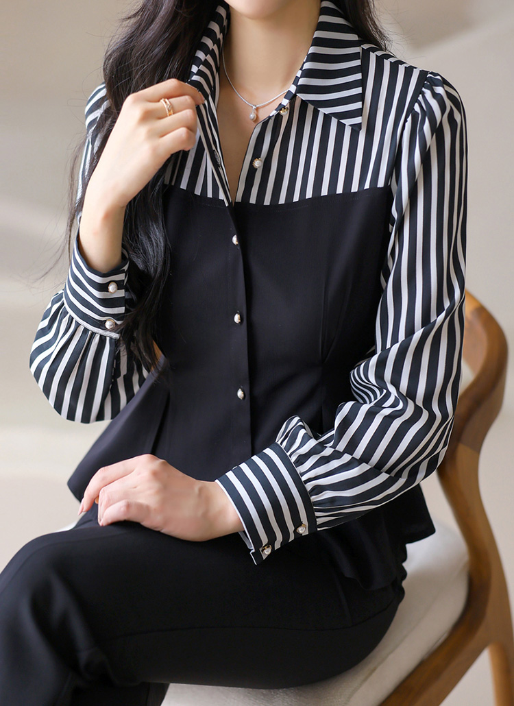[LouisAngel] ストライプ切り替えペプラムブラウス bl41812