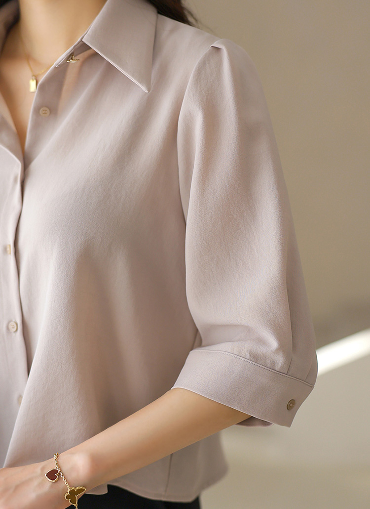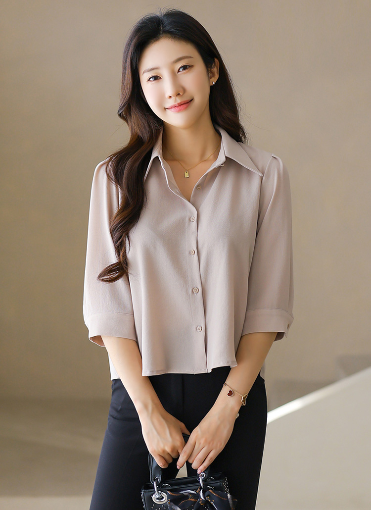 7부 소매와 카라 디자인이 조화롭게 매치되어