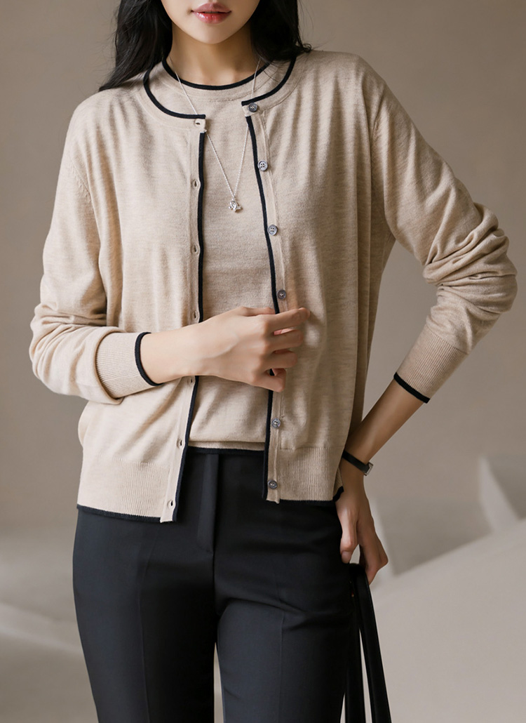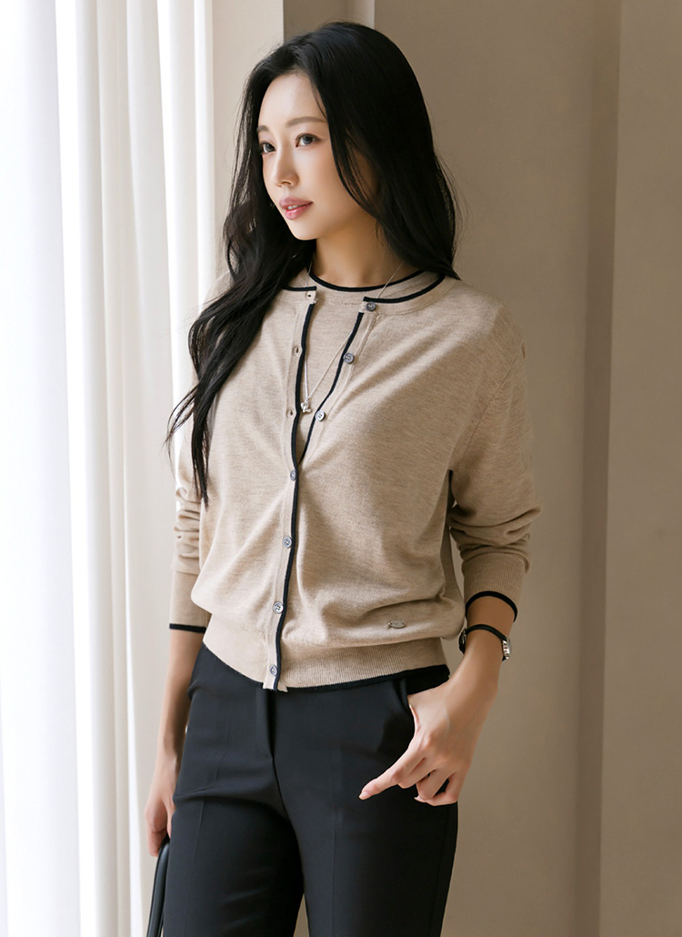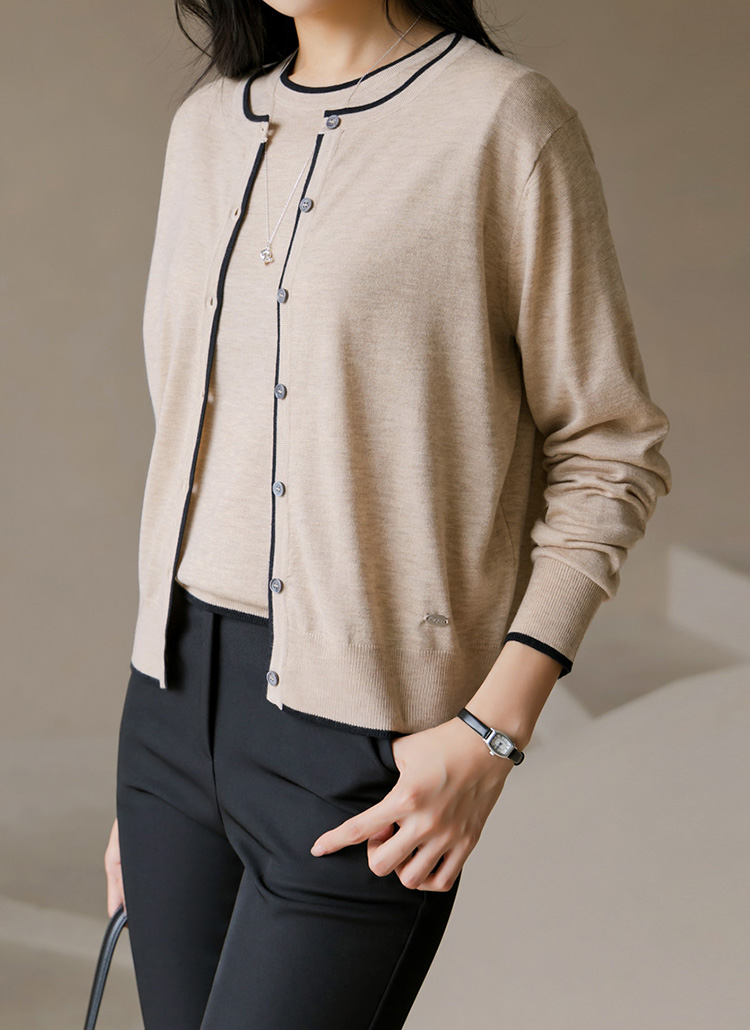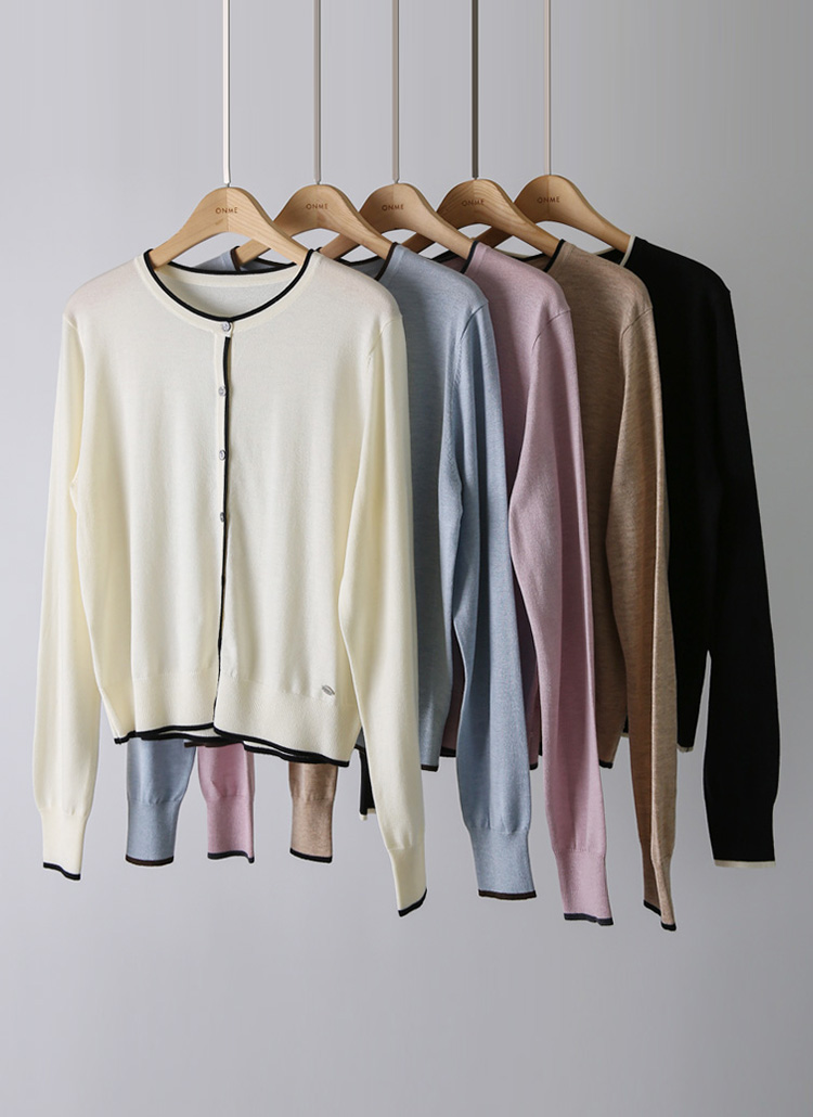 【5色展開】[THE ONME] ウールブレンドバイカラーラインニットカーディガン cd41920
