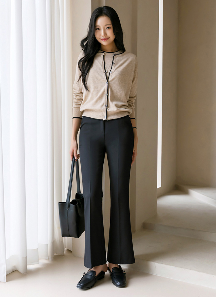 심플한 배색라인과 팬던트 포인트로 세련된 무드를 연출하는