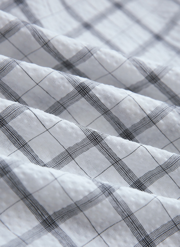 가벼운 원단에 체크 패턴으로 캐주얼한 매력을 더한