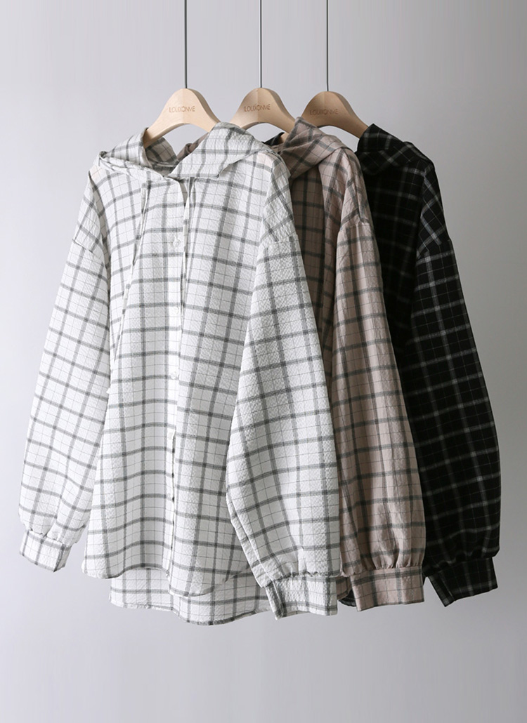 [THE ONME] オーバーフィットフード付きチェックシャツ bl41935