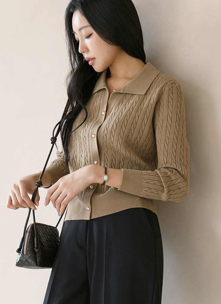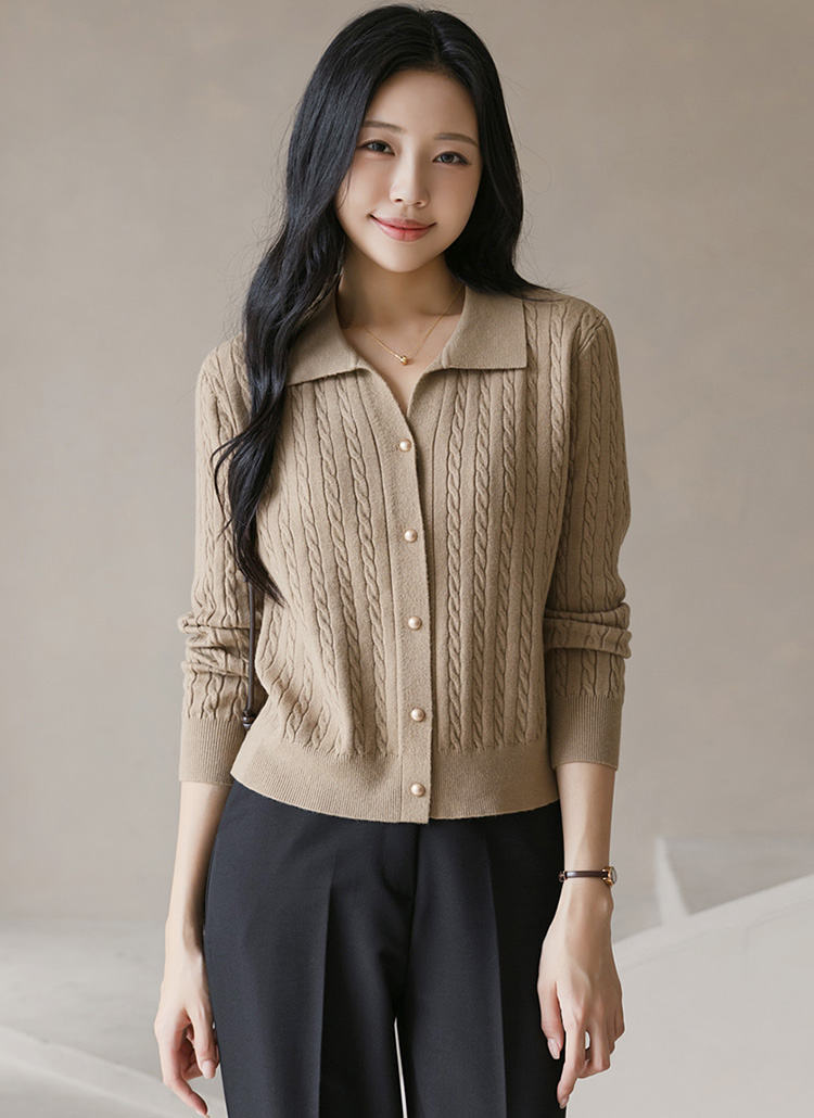 트렌디한 꽈배기 원사에 무광 골드버튼으로