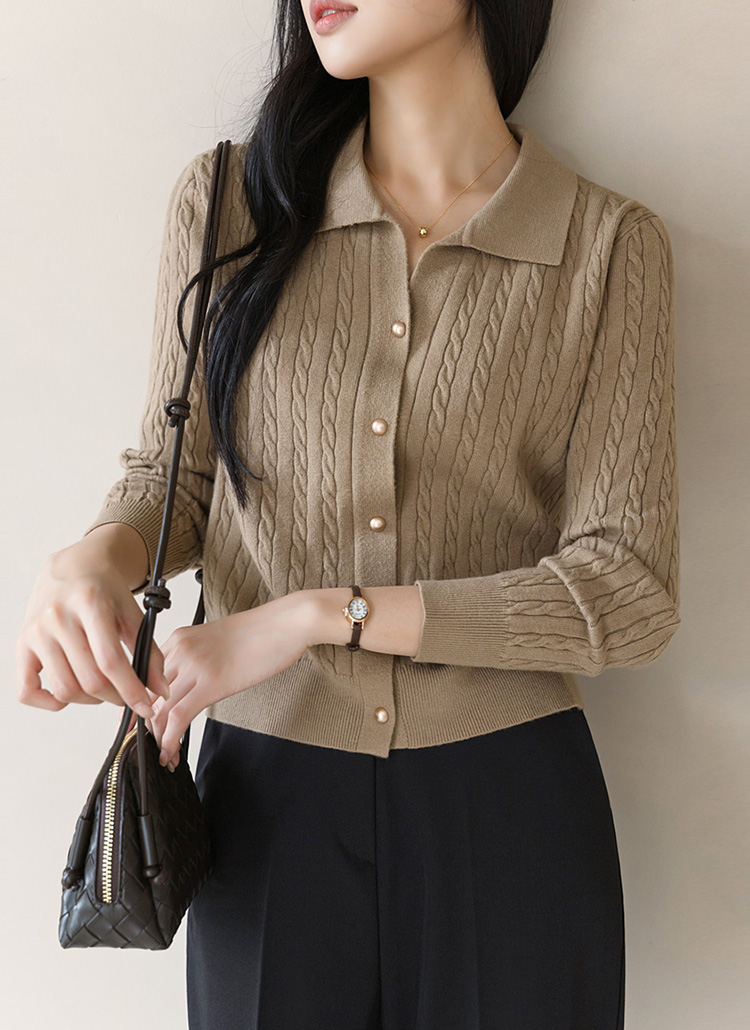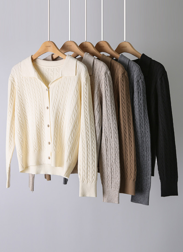 【5色展開】[THE ONME] ゴールドボタン オープンカラー ケーブルニットカーディガン cd41959