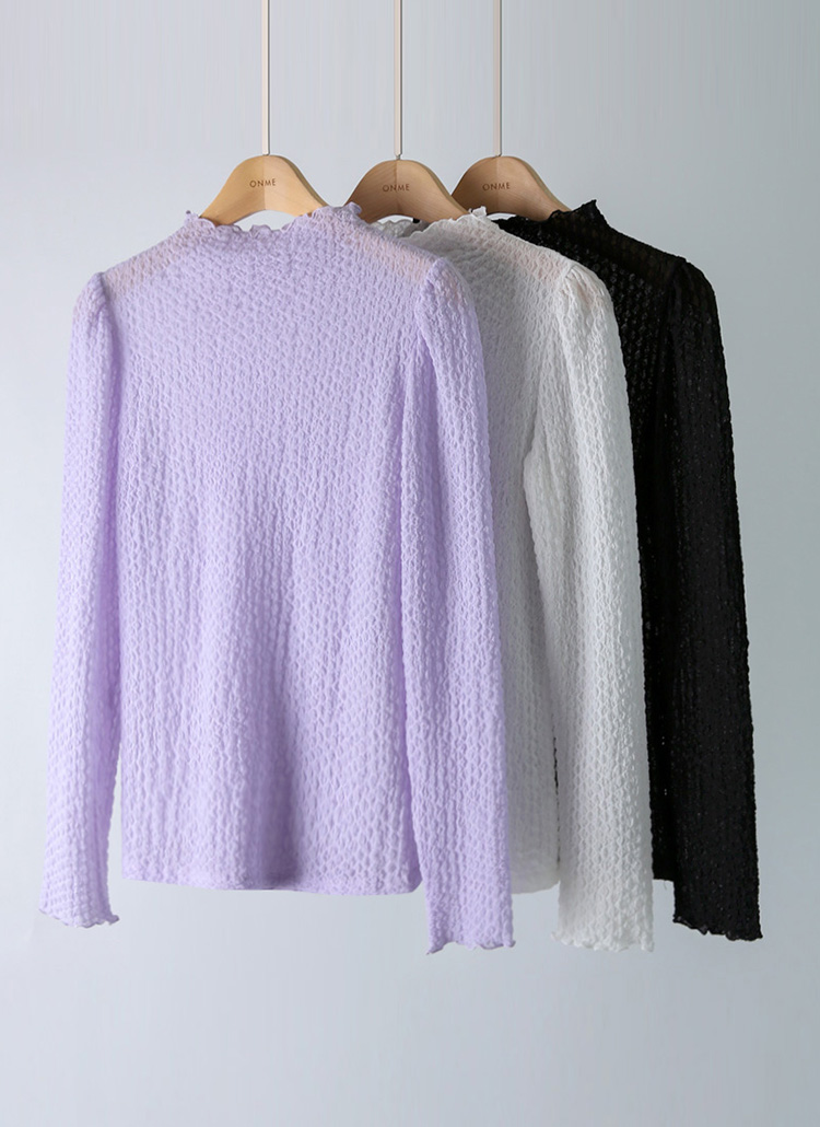 시스루한 소재로 제작되어 여리여리 여성스러운 실루엣을 연출해주며,