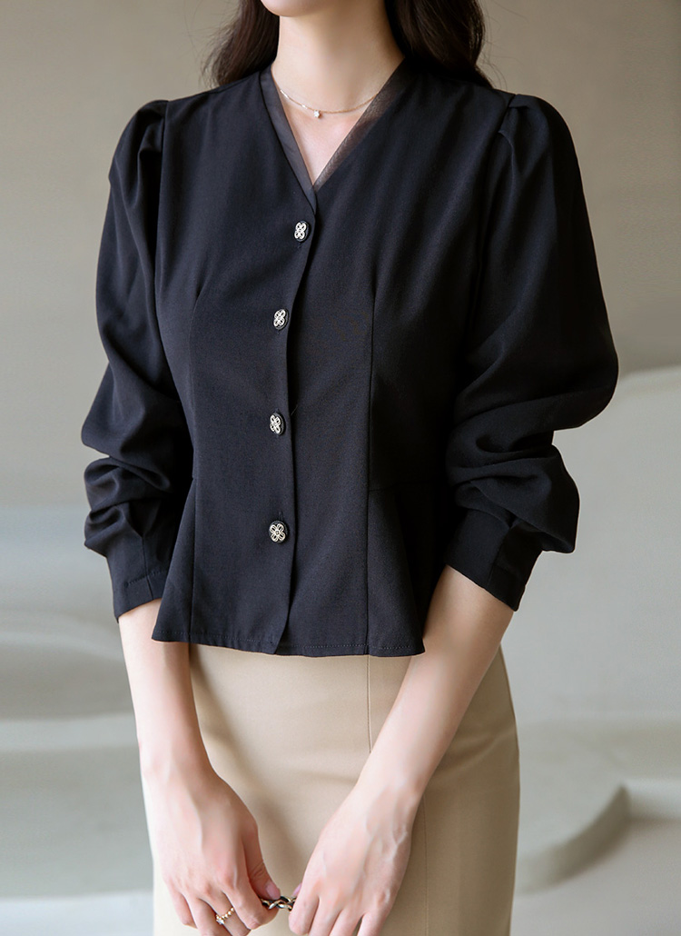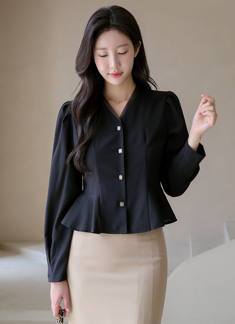 シアードッキングVネックペプラムブラウス bl41995