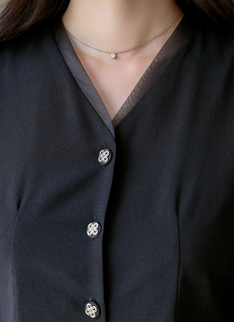브이넥라인에 시스루 오간자 원단을 덧대어