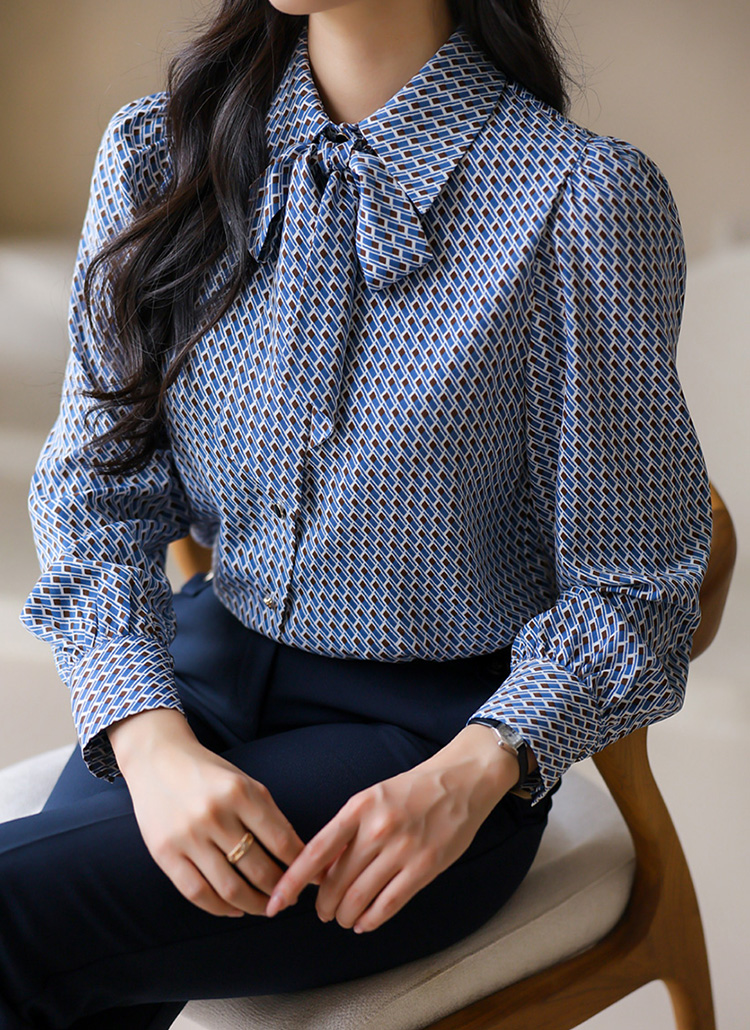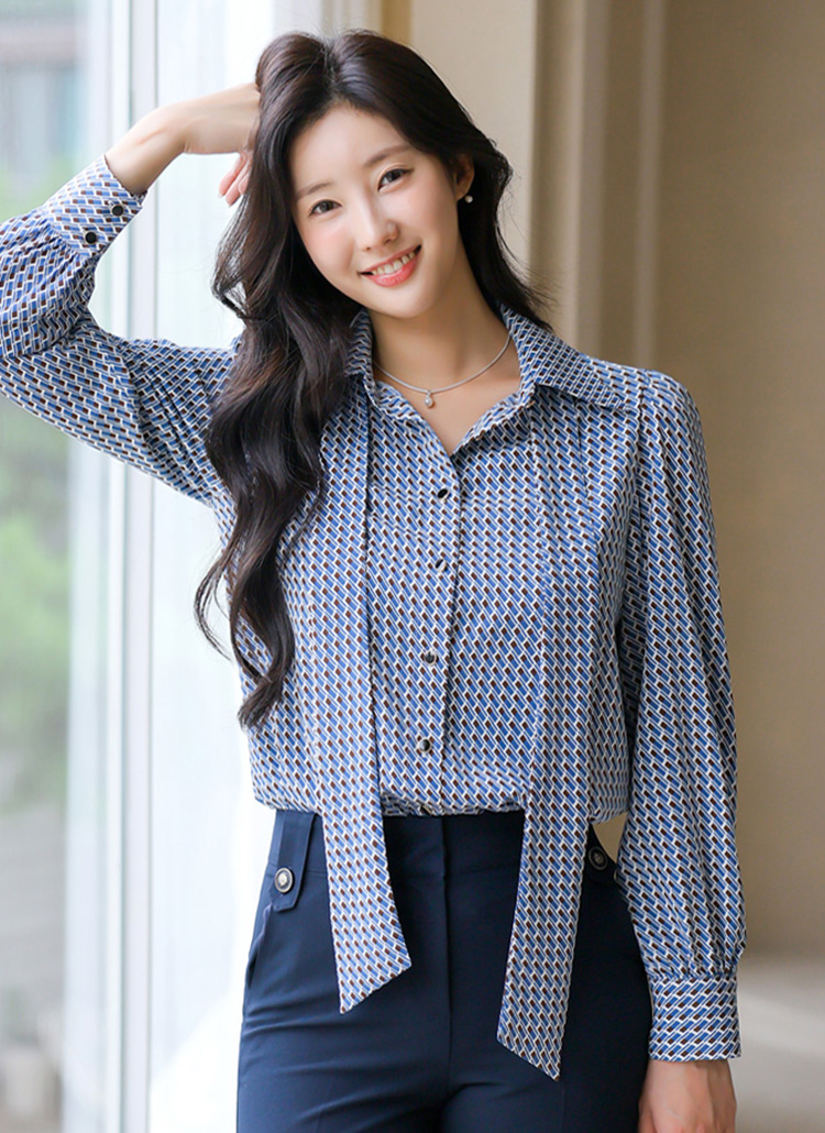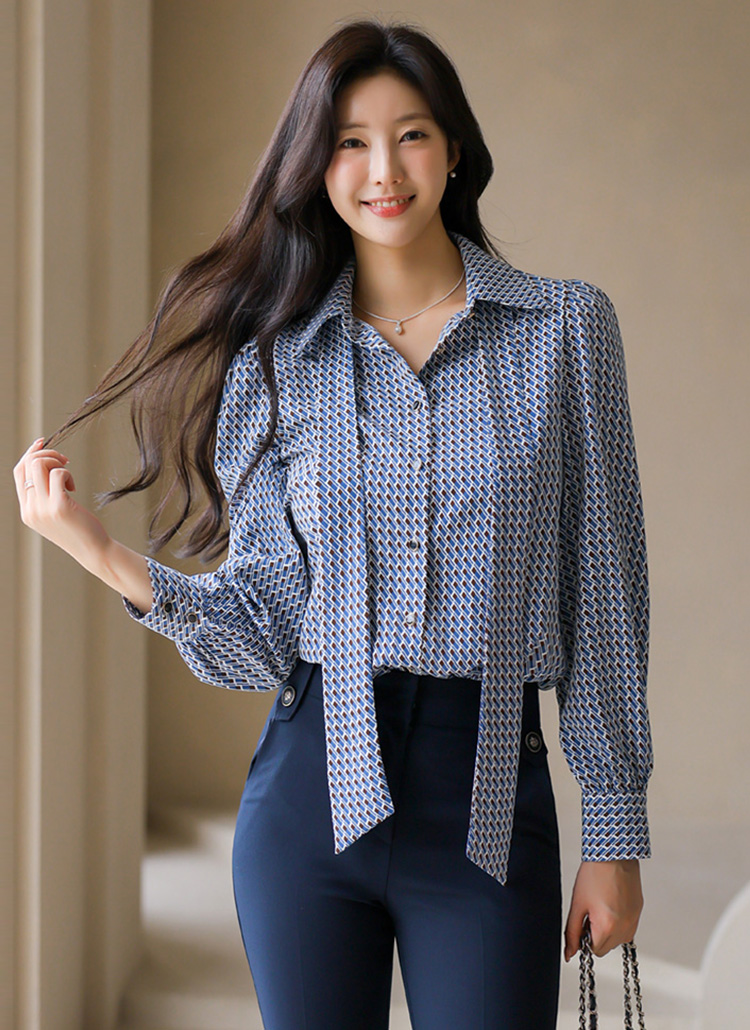 [LouisAngel] リボンタイ付き 2Way幾何柄ブラウス bl42001
