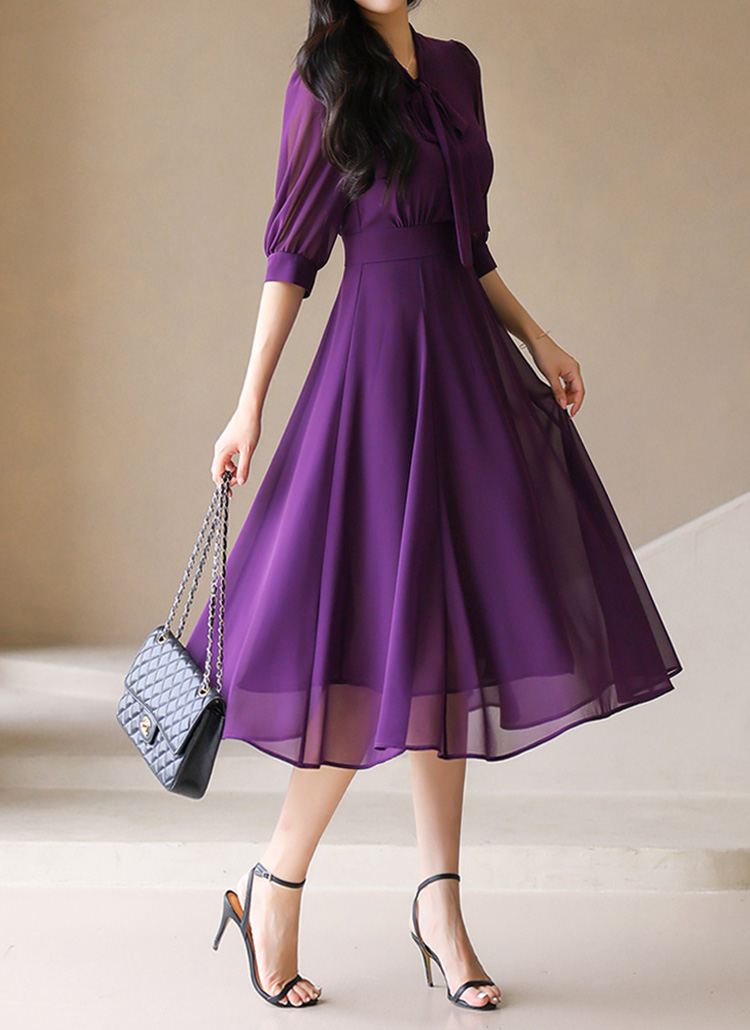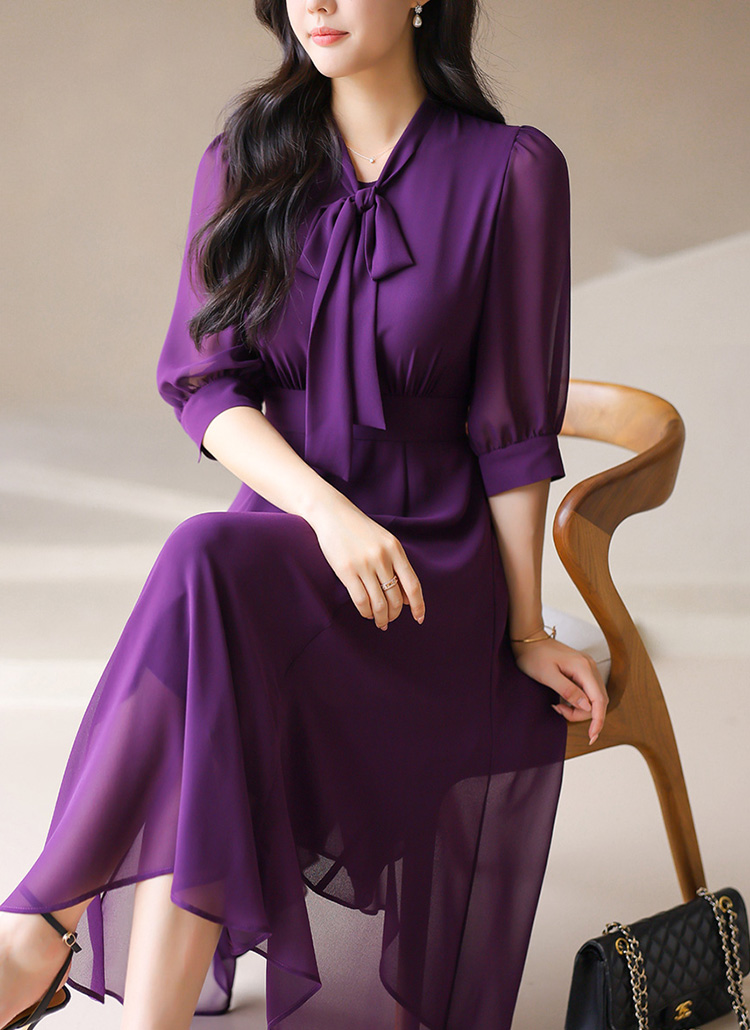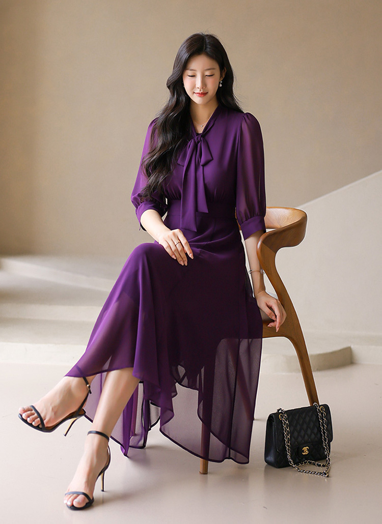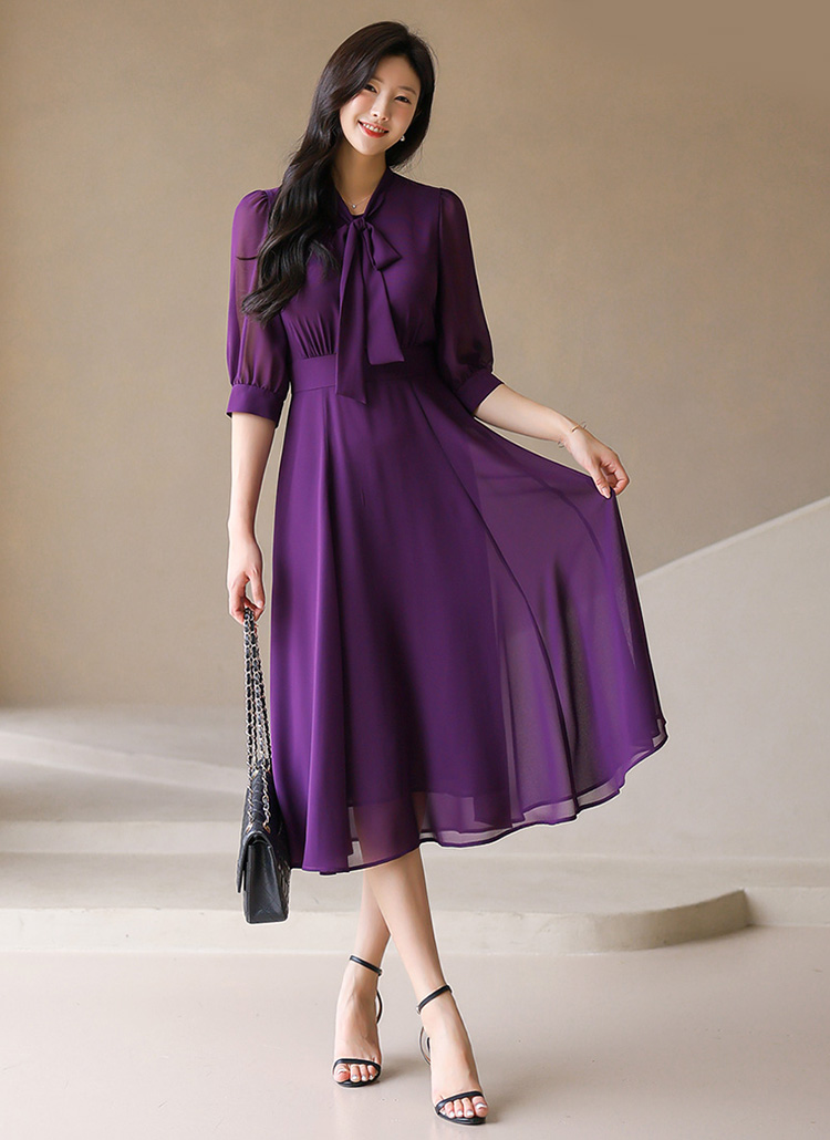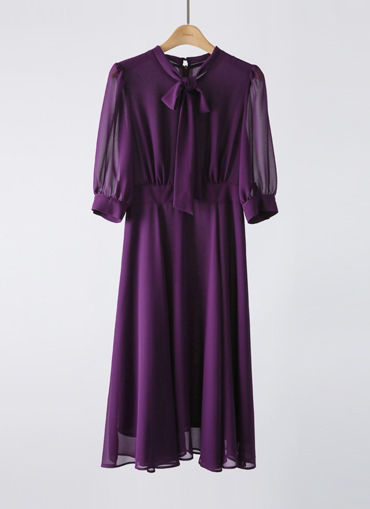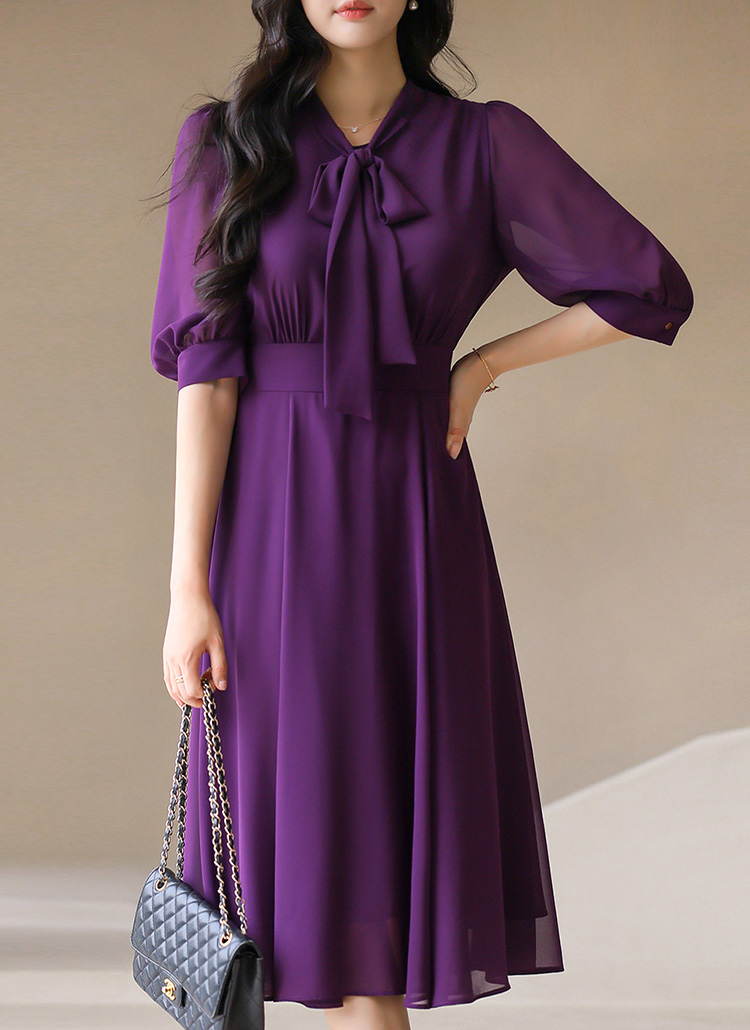[LouisAngel] 7分袖リボンタイネックフレアシフォンワンピース op42043