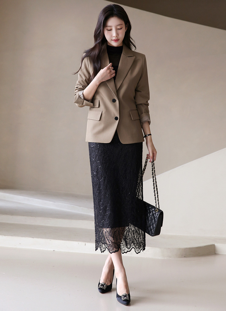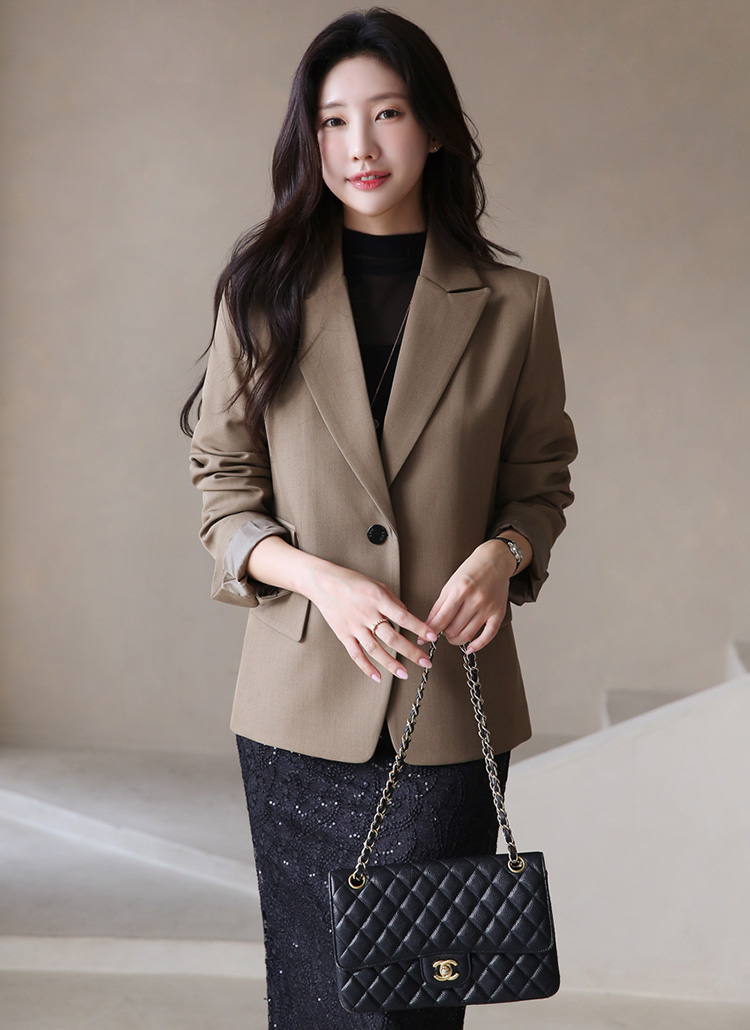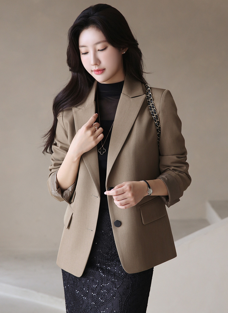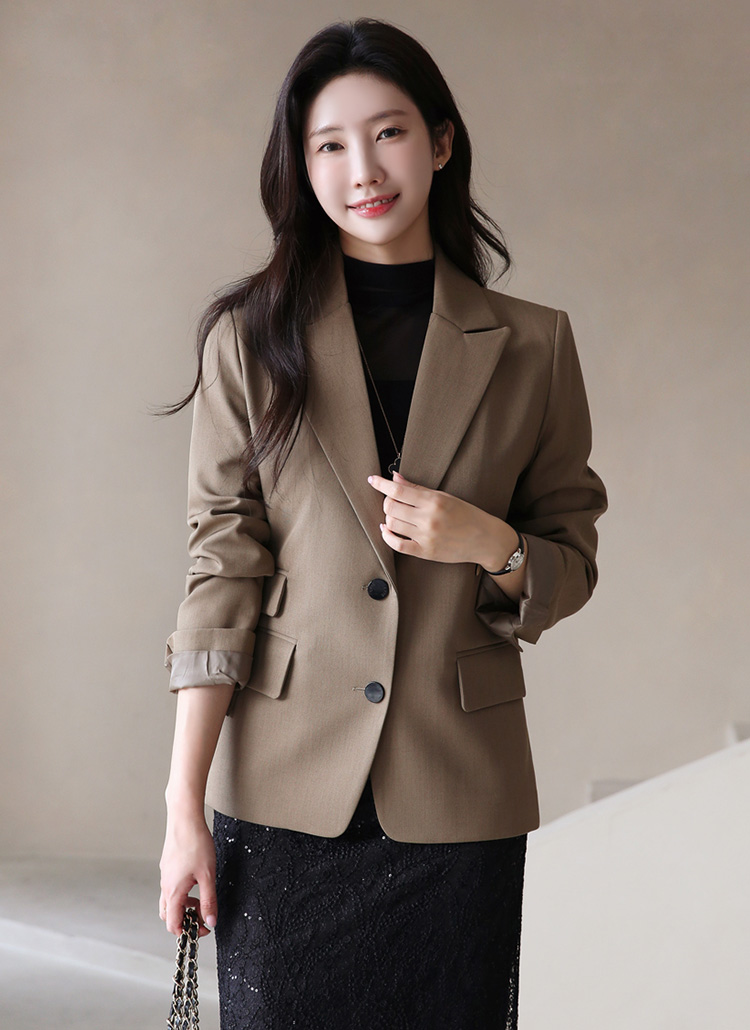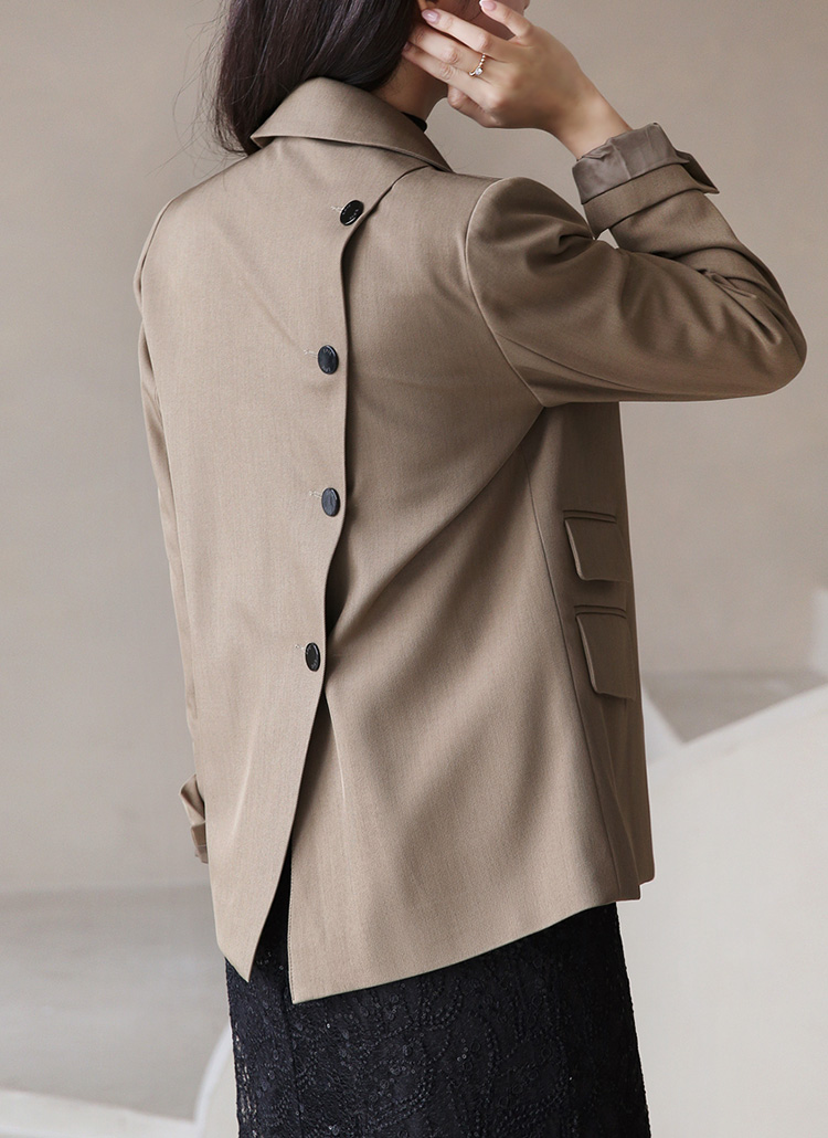 트렌디한 백 사선 버튼과 트임으로 포인트를 준